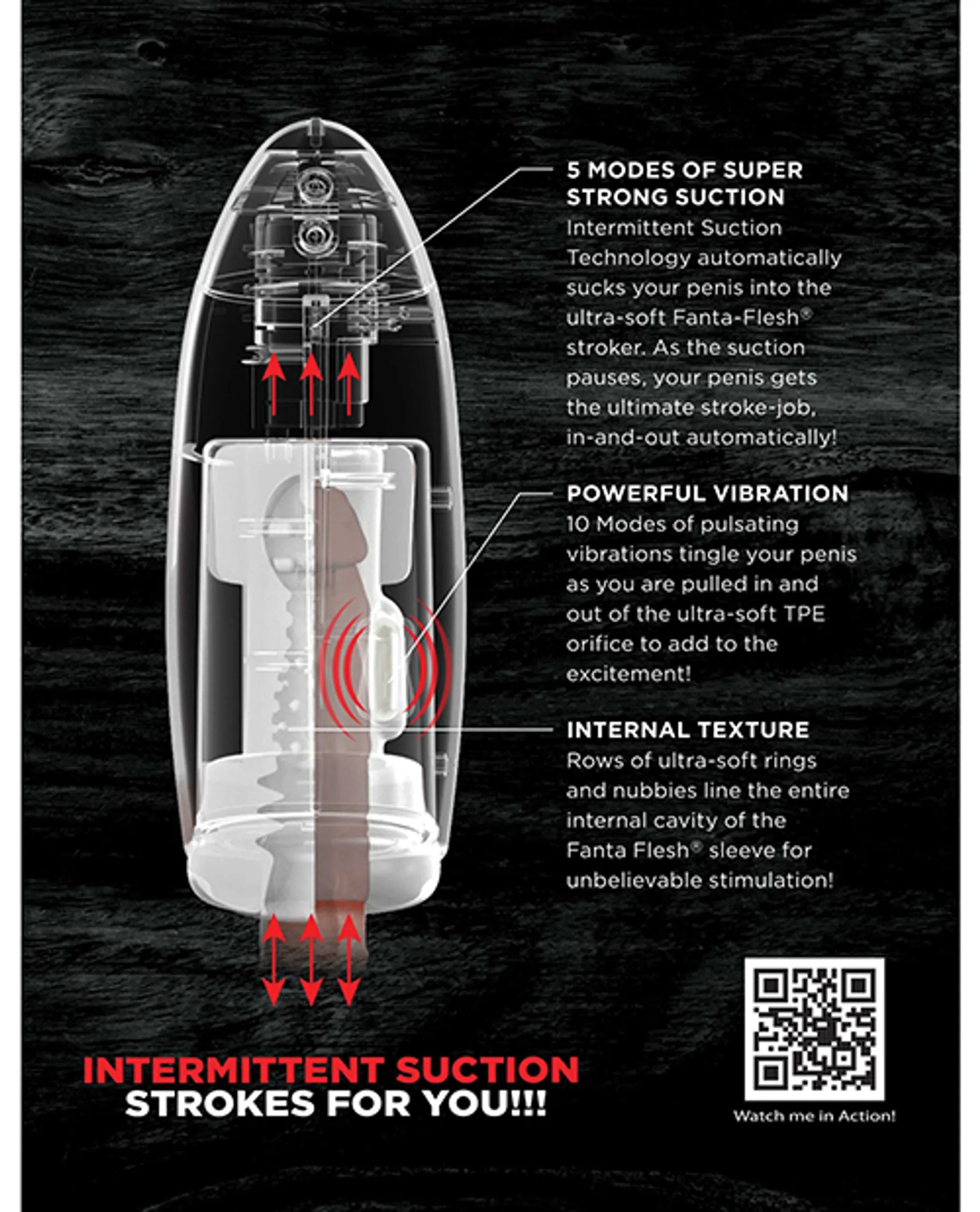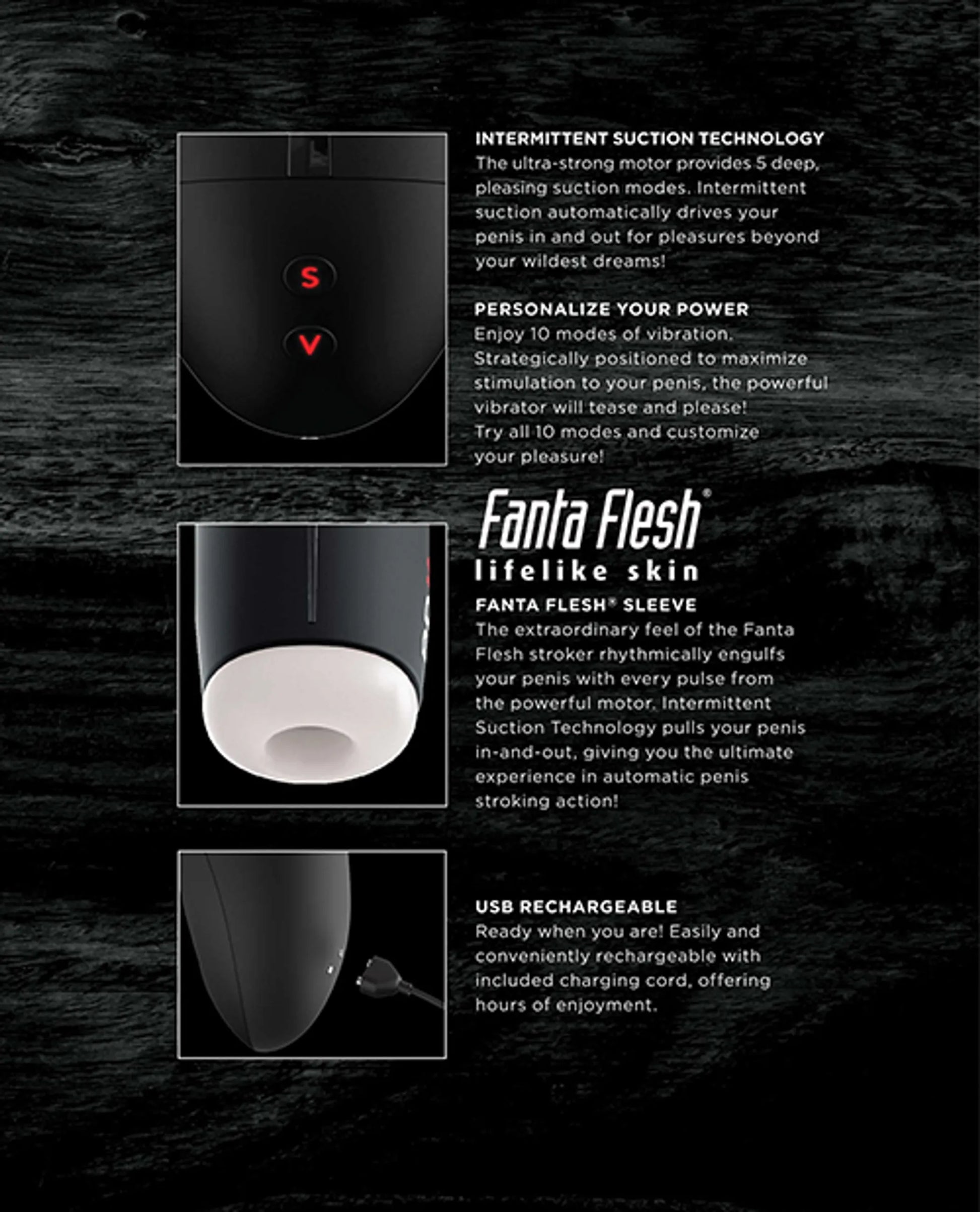 PDX Elite Fap-O-Matic Stroker from PDX Brands. The Fap-O-Matic elevates masturbation with powerful intermittent suction for the ultimate stroker experience. It is a perfect storm of sensation for heightened solo sex sessions that can be customized to your personal moods! Get ready for explosive hands free thrusting surrounding your penis with ultra soft automatic stroking action! Your ultimate masturbation experience is ready when you are! 5 modes of super strong suction. Intermittent Suction Technology automatically sucks your penis into the ultra soft Fanta Flesh stroker. As the suction pauses, your penis gets the ultimate stroke job, in and out automatically! Powerful vibrations. 10 modes of pulsating vibrations tingle your penis as you are pulled in and out of the ultra soft Thermoplastic Elastomers TPE orifice to add to the excitement! Rows of ultra soft rings and nubbies line the entire internal cavity of the Fanta Flesh sleeve for unbelievable stimulation! Package contents: 1 Fap-O-Matic. 1 USB Charging Cord. Product specifications: total length 9.2 inches. Total width 3.4 inches. Insertable diameter 2 inches. Insertable length 5 inches. Charging information: charge time 120 minutes. Play, run time 80 minutes. Charger type Magnetic Rechargeable USB. 1 year warranty. Categories: Male Masturbators, Sex Toys for Men, Rechargeable Vibrators, Masturbators. PDX Brands: PDX Plus. PDX Brands: PDX Elite, PDX Plus, PDX Extreme, PDX Male, Fuck Me Silly, Ultimate Fantasy Dolls. Restricted, Amazon Restricted. 2022