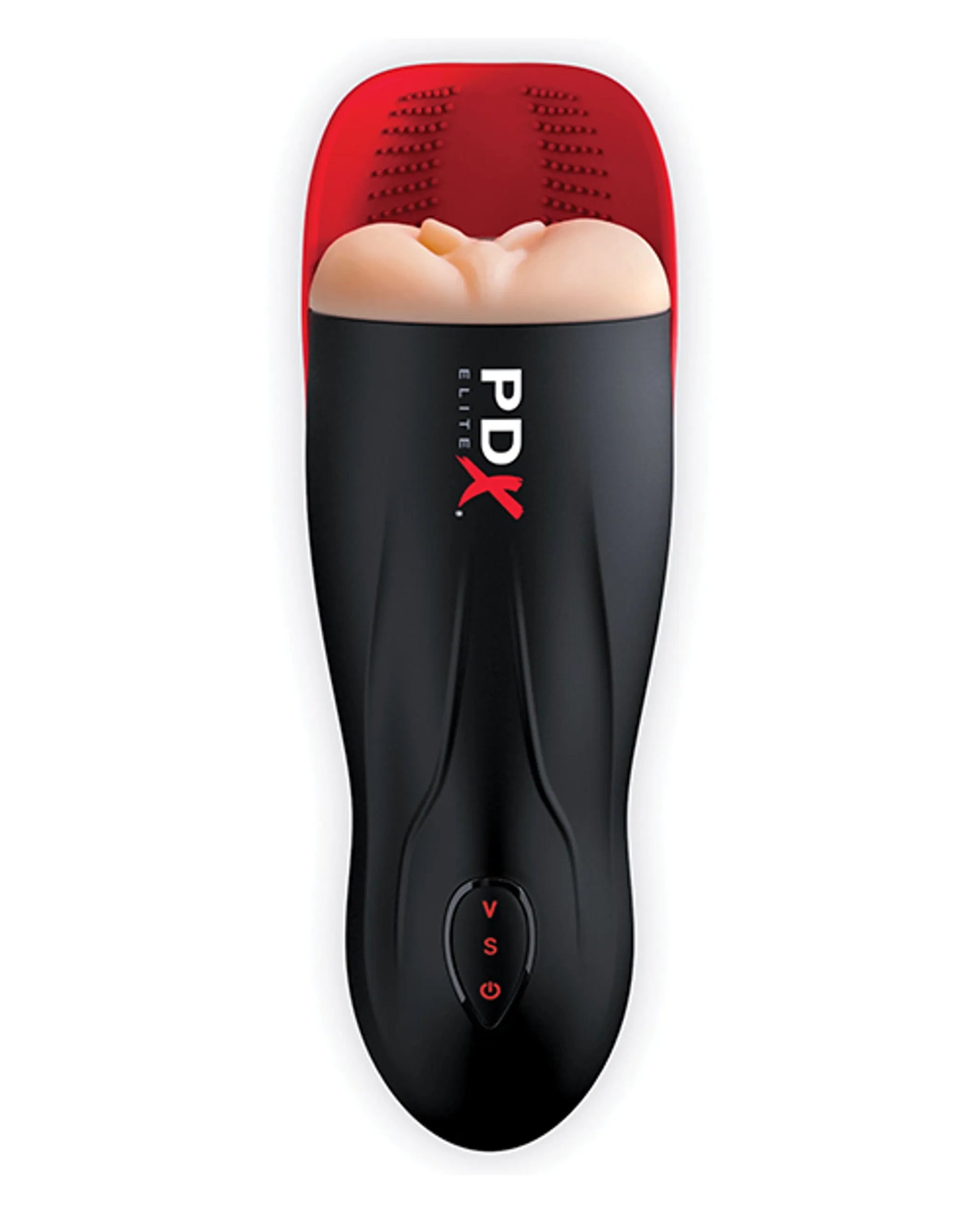 PDX Elite Fuck-O-Matic Stroker from PDX Brands. Intermitten suction strokes for you. One for the cock and one for the balls. The Fuck-O-Matic elevates masturbation with powerful suction action for the ultimate stroker experience. It is a perfect storm of sensation for heightened solo sex sessions that can be customized to your personal moods! Get ready for explosive hands free vibration surrounding your balls with rows and rows of soft pleasure nubs. Your ultimate masturbation experience is ready when you are! 5 modes of super strong suction. The ultra strong motor provides 5 deep, pleasing suction modes. Intermittent suction automatically drives your cock in and out for pleasures beyond your wildest dreams! Intermittent Suction Technology slides your cock into the ultra soft Fanta Flesh pussy. As the suction pauses, your cock gets the ultimate stroke job, in and out automatically! 10 modes of pulsating vibrations simultaneously tingle the tip of your cock while the Elite Silicone tongue gently stimulates your balls with a second vibrator. In addition, rows of soft Silicone nubbies softly stroke your balls as you are pulled in and out of the ultra soft vaginal lips to add to the excitement! USB Rechargeable Masturbator. Ready when you are! Easily and conveniently rechargeable with the included charging cord, offering hours of enjoyment. Charging time 90 minutes. Play, run time 40 minutes. Charger type: Magnetic. Package contents 1 Fuck-O-Matic. 1 USB Charging Cord. Product specifications: total length 10.6 inches. Total width 3.5 inches. Insertable diameter 2 inches. Insertable length 5 inches. 1 year warranty. Categories: Male Masturbators, Sex Toys for Men, Rechargeable Vibrators, Masturbators. PDX Brands - PDX Elite Fuck-O-Matic. PDX Brands. PDX Plus. PDX Brands: PDX Elite, PDX Plus, PDX Extreme, PDX Male, Fuck Me Silly, Ultimate Fantasy Dolls. Restricted, Amazon Restricted. 2022.