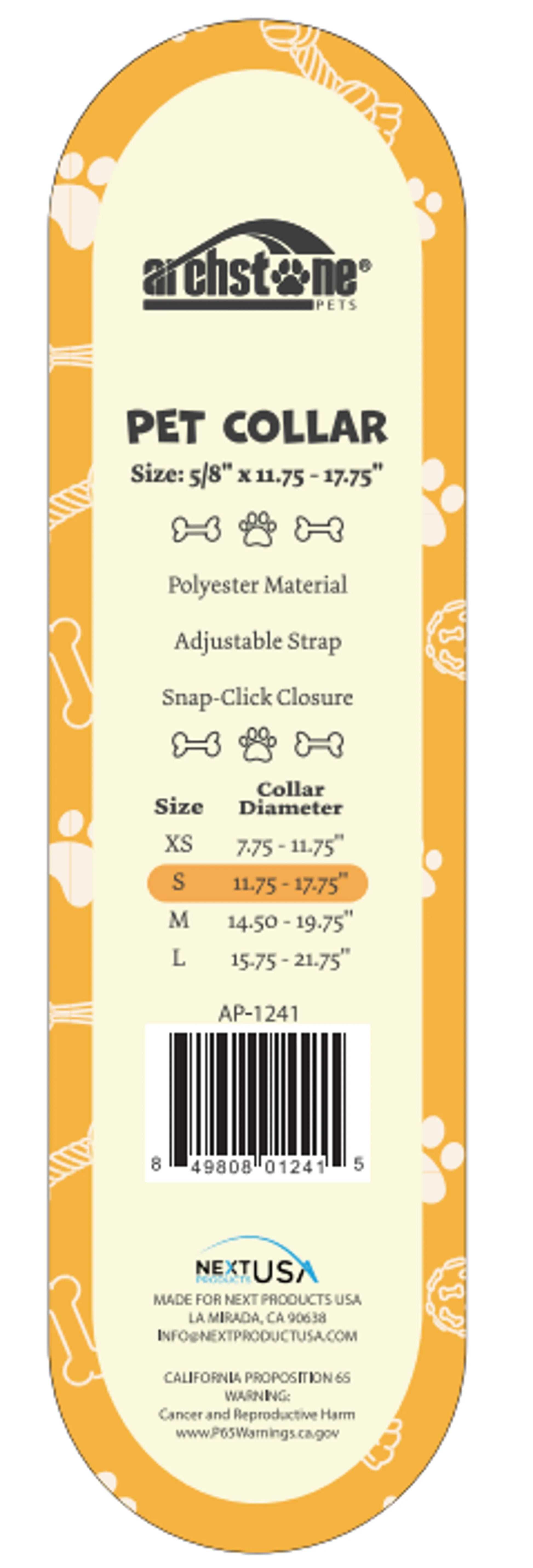 Movie night anyone?! Let your furry friend stay styling with our Pupcorn Print Pet Collars! One print style with fun and unique "Pupcorn" icons. Snap-click closure collar with ring for tags. Made of polyester material.