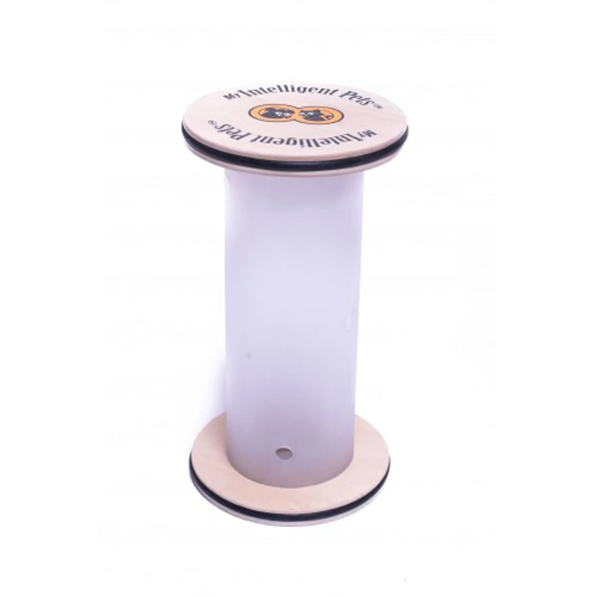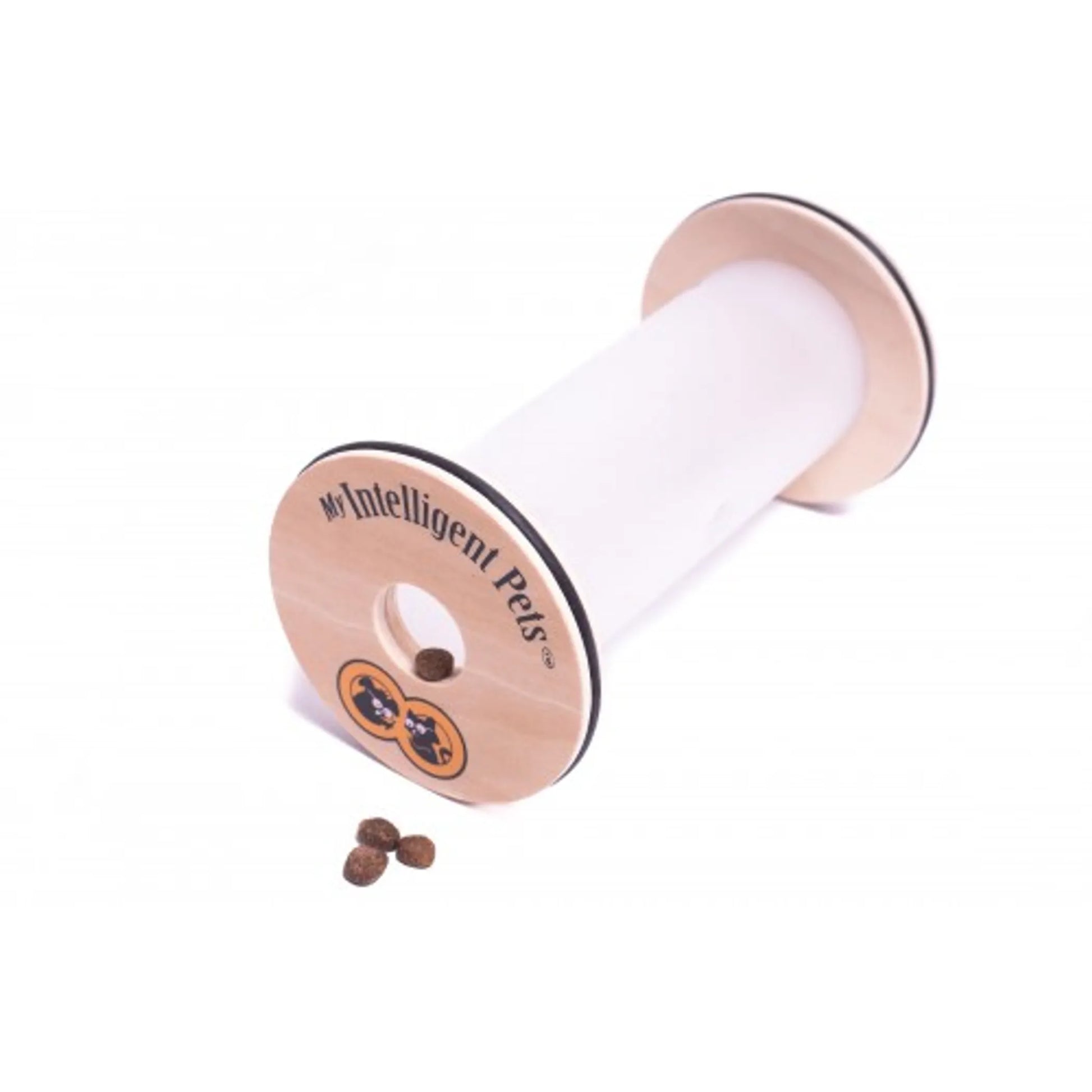 Length: 3.50 Width: 3.50 Height: 7.00 Length: 3.50 Width: 3.50 Height: 7.00 Happy Roll Is relatively easy game with 1 paw level of difficulty on our scale. It contains of a transparent cylinder where you insert your dog's favorite treats. The challenge is to make the treats fall out through 3 openings in the cylinder by rolling it on flat surface. This game is designed for small and medium breeds. According to dog's behaviorists 10 minutes of mental stimulation with employment of interactive game equivalents to 1 hour of physical exercise. This is especially important for the dogs living in large cities where long walks are difficult and impossible, senior dogs with ailments that do not allow them for prolong outings and those living in cold climates where going outside can put animal's health at risk. Additional information: Dimensions: 9"x5"x5" Weight: 1lb All our games and puzzles are made from certified wood covered with water-based varnish that is not harmful to humans and animals. Please keep the game dry and free of water exposure, as the wooden pieces may swell otherwise. Use only dry treats for playing with our games Keep out of reach of small children since removable parts can be a choking hazard to them.