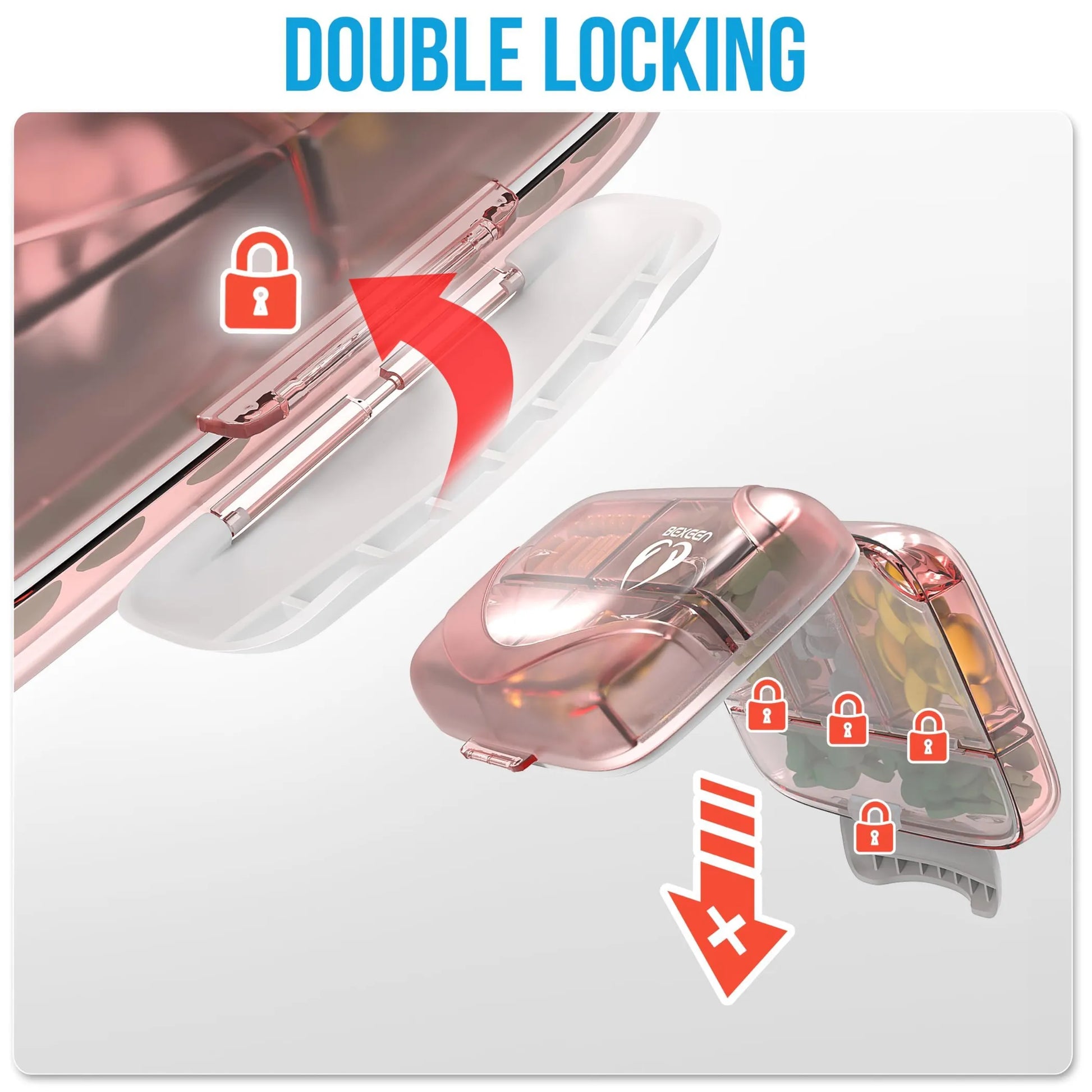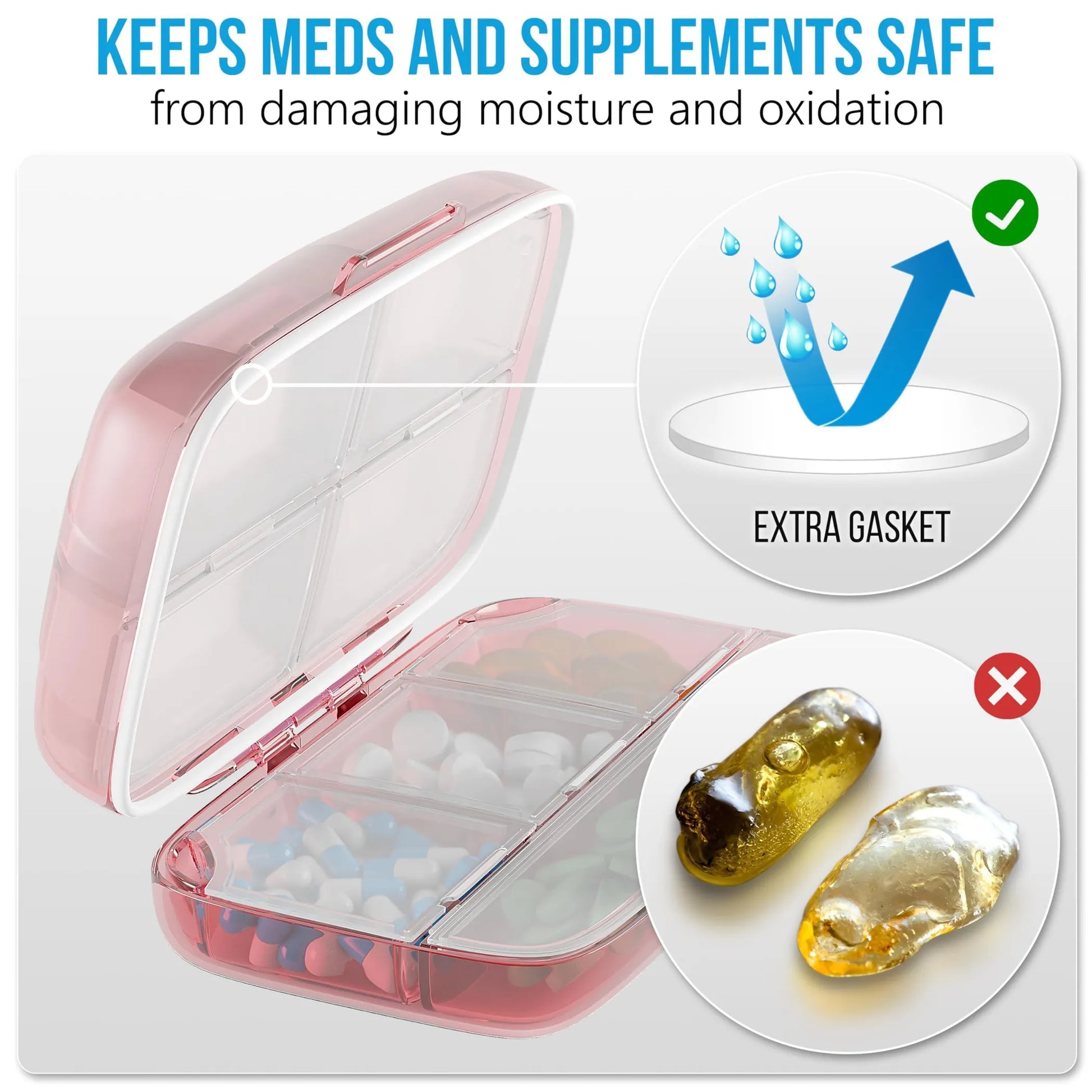 Large box fastener and small snap joints prevent any pop-open or dump-open. Easier and safer travel pill organizer