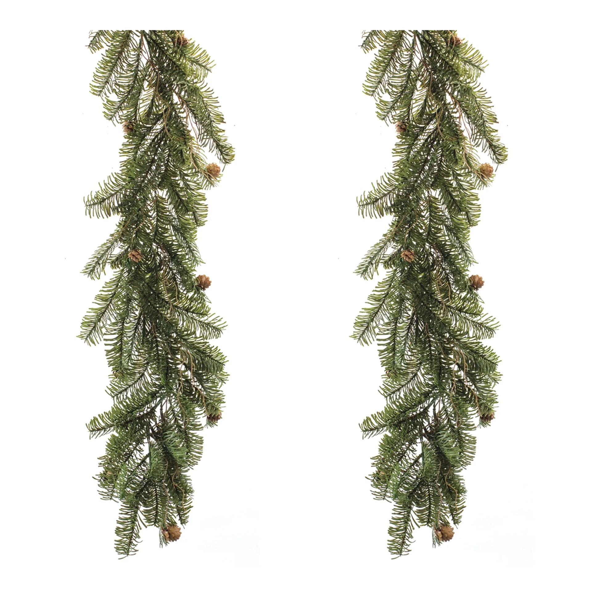 Get ready to decorate your home this holiday season with a set of Pine Cone Twig Garlands! Featuring natural green and brown tones and pinecone and twig accents, set piece is sure to fit right in with your holiday decor. The quality plastic compsosition is sure to endure for seasons to come. Adorn your Christmas tree or staircase banister with this lovely accent, or weave the pieces into a pine wreath or pine garland for added holiday cheer.