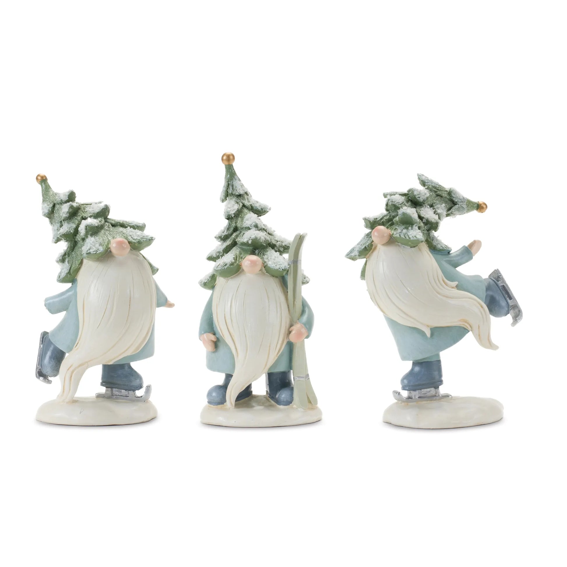 Ring in the holiday season with these adorable set of three Pine Tree Gnome Figurines! Crafted from polyresin and frosted for a winter-inspired finish, the set is adorned with delightful ski and ice skate accents in cool green and blue tones. With a unique pine tree hat design, these charming gnomes will bring holiday spirit to any home. Add some extra cheer this season with the set of Pine Tree Gnomes!