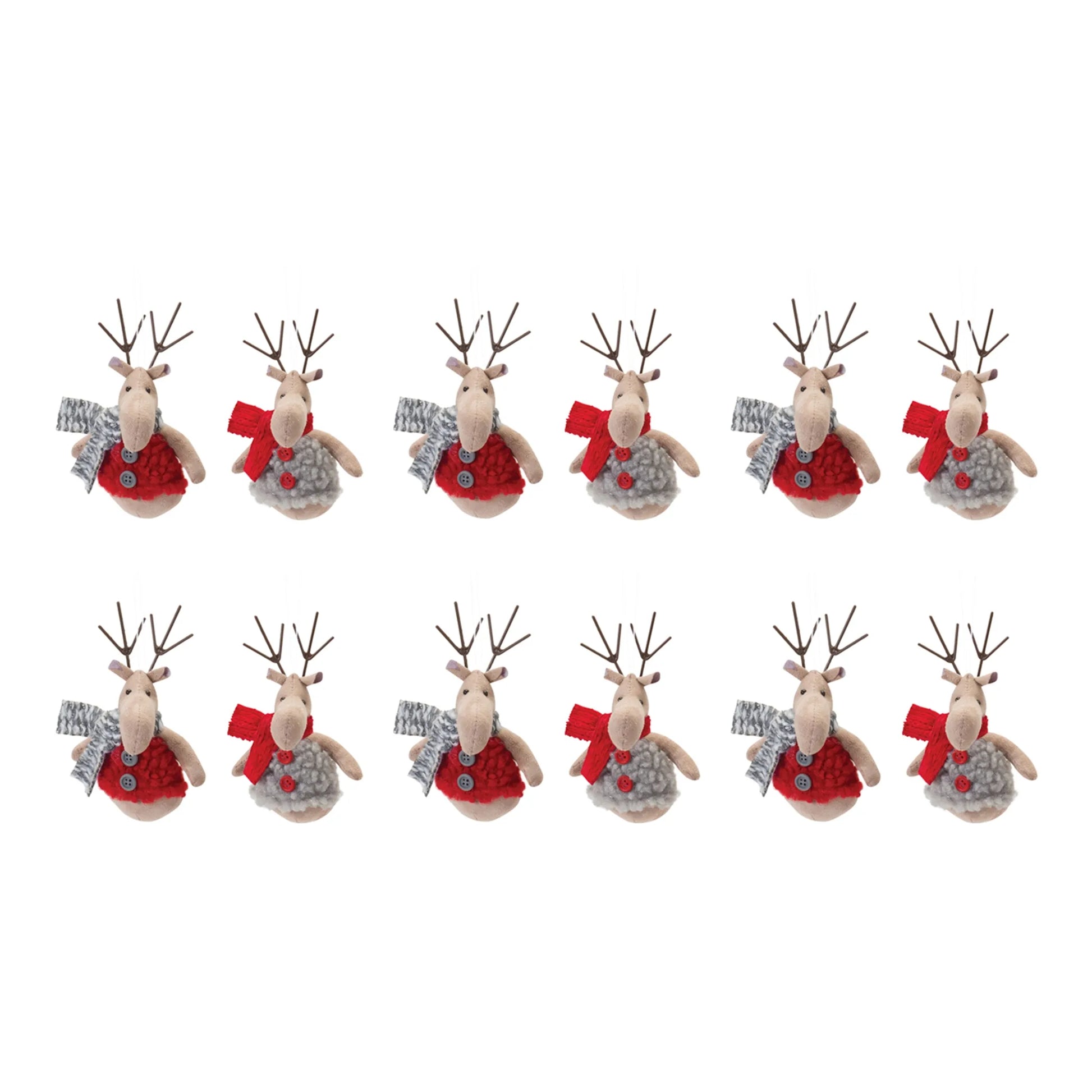 Add a whimsical touch to your Christmas Tree with this beautiful set of Plush Deer with Sweater Ornaments. Featuring 12 pieces, this set's festive red and grey tones, plush deer character design, and woven sweater and scarf accents are the perfect combination to create a memorable display. The quality polyester fabric composition with string hanger is sure to endure for seasons to come. Whether you're adding a touch of cheer to your home or gifting to a loved one, these ornaments will definitely bring smiles to your home.