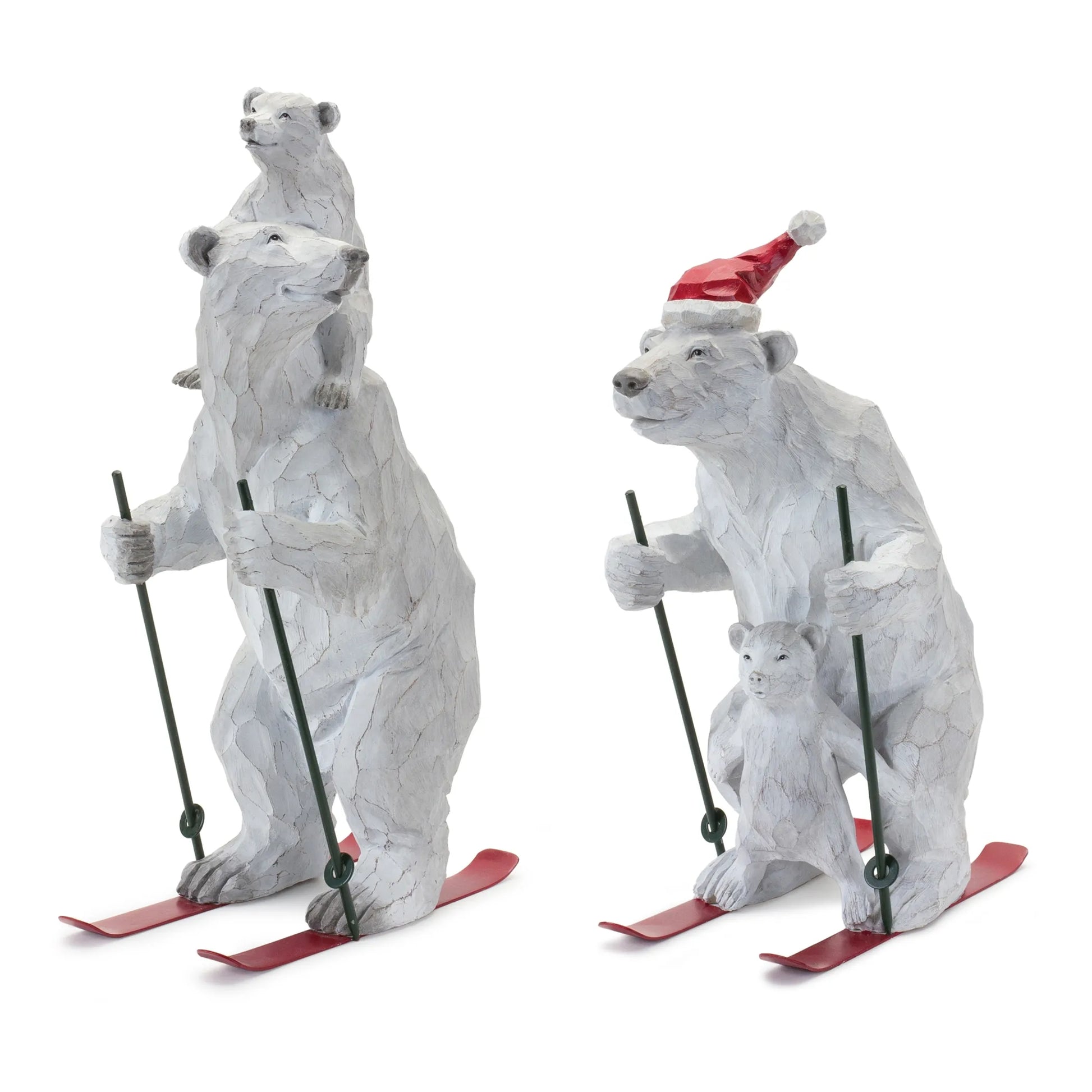 Celebrate the winter season with the joyous and whimsical Polar Bear on Skis Figurines! Boasting a distressed white finish, this adorable figurine features a polar bear wearing skis and a Santa hat. The perfect addition to your festive decor, this polyresin composition will bring a cheerful energy to your home. Enjoy the winter months with Polar Bear on Skis Figurines!