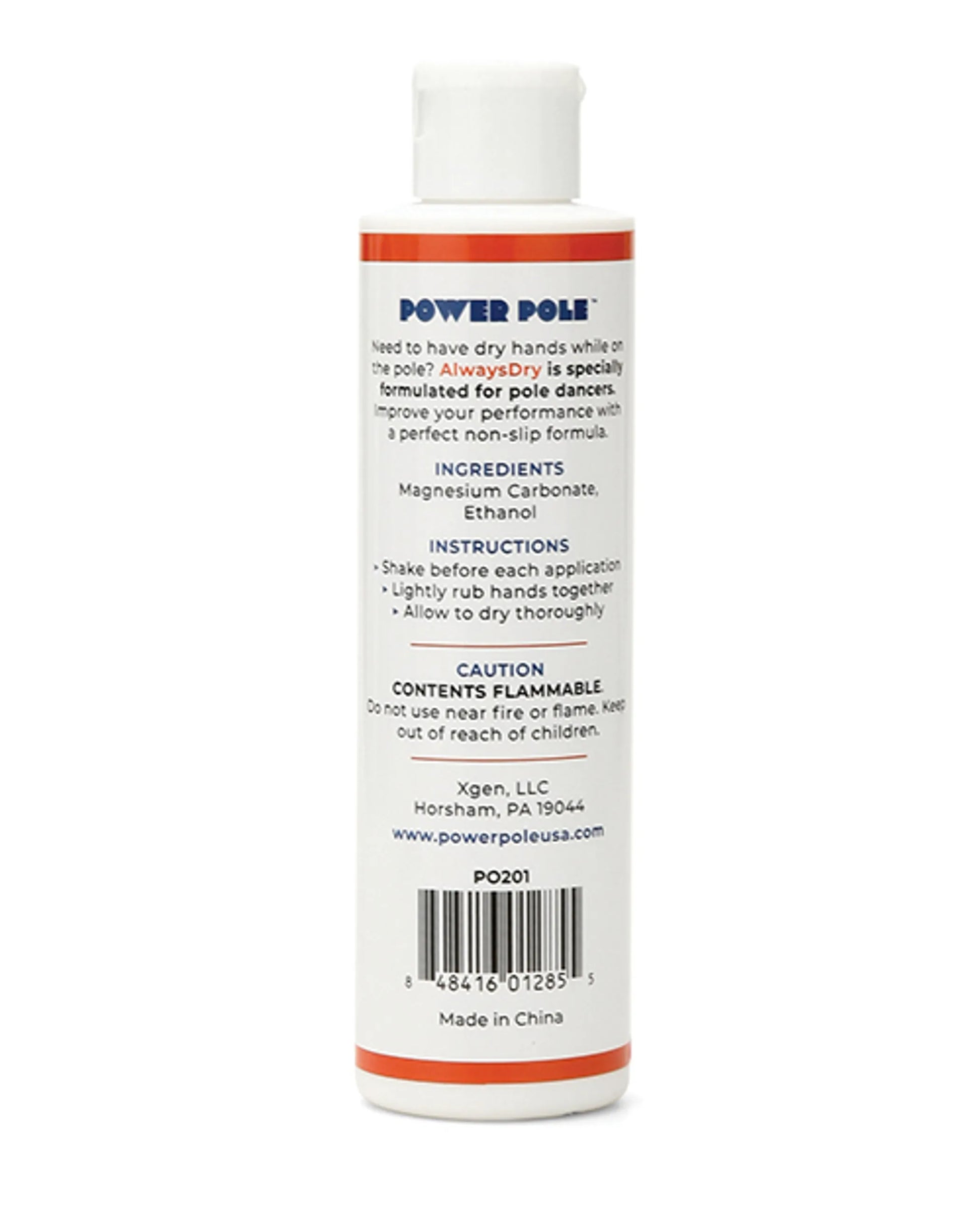 Power Pole Always Dry Powder 5 ounces from X-Gen Products. Specially formulated for pole dancing. Need to have dry hands while on the pole? Always Dry from Power Pole is specially formulated for pole dancers. Improve your performance with a perfect non-slip formula. Features: no sweat. Extra grip. Ingredients: Magnesium Carbonate, Ethanol. Ethanol is a renewable fuel made from corn and other plant materials. Instructions: shake bottle well before each application. Lightly rub hands together. Allow time to dry thoroughly. Flammable. Caution: do not use near fire or flame. Keep out of reach of children. Power Pole the dancer's pole fit for everybody! Categories: Sex Toys for Couples, Health and Beauty Aids, Adult Gags, Gifts and Novelties, Sex Toys for Women. 2023.