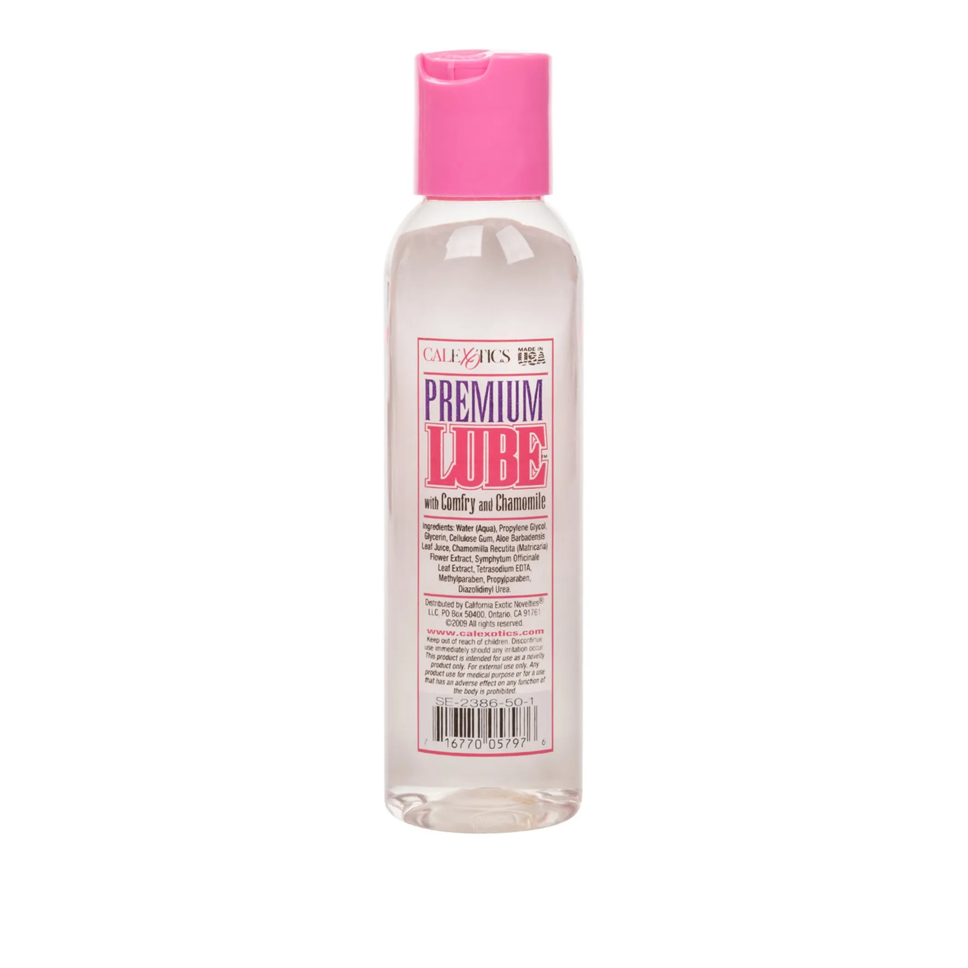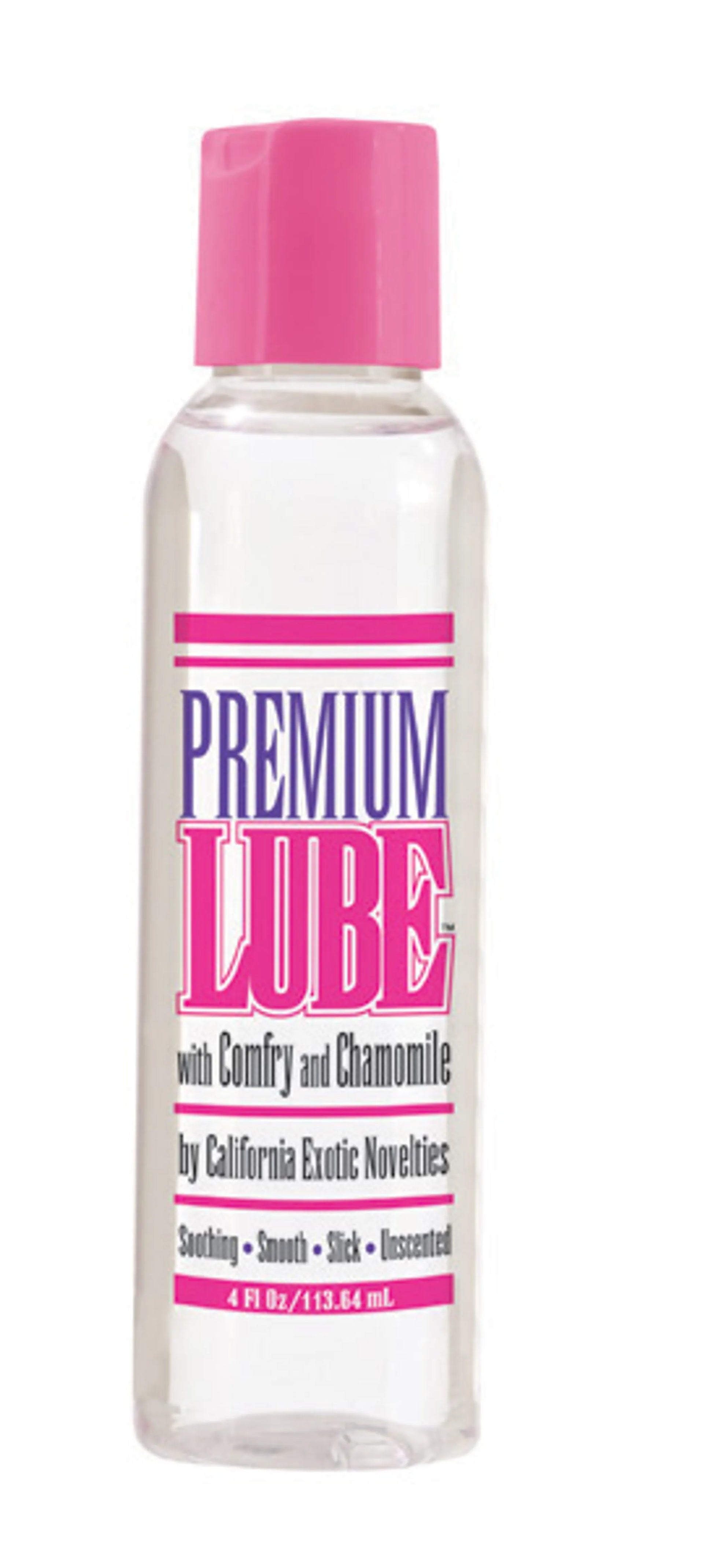Premium Lube from California Exotic Novelties. Experience ultimate ecstasy with the Premium Lube. The high quality, water based lubricant is smooth and slick for maximum coverage and long lasting results. The easy to use lubricant is suitable for use with all erotic toys and is great for spontaneous amorous action. Glide a little lube onto your sweet spots and erogenous zones, and enjoy prolonged and extended tantalizing pleasure. The lube is unscented and infused with soothing and relaxing Comfry and Chamomile. The sensuous lubrication formula is supplied in a handy 4 fluid ounces size transparent bottle with twist cap and is perfect for intimate contact and suitable for use with all types of adult toys. The smooth and silky lube is easy to apply, and also recommended for toy sharing use. Increase your stimulation ecstasy by ensuring that you lube up your love holes before play. Ideal for the first time and experienced users, the lube is designed for use during every intimate encounter. Apply the correct amount of lube to your preferred pleasure zone and get ready to experience mind blowing arousal and stimulation sensations, as the formula creates the perfect sliding and gliding action. Use the lube for results that blows your mind. After sensual seduction and ultimate climax, the lube washes off easily with mild soapy water. High quality, unscented, water based lubricant. Infused with soothing Comfry and Chamomile. Smooth and slick formula for long lasting results. 4 fluid ounces. Premium Lube is a registered trademark for California Exotic Novelties. Sex toys and sexual wellness. Made in the USA. Categories: Anal Toys, Erotic Body Lotions, Lubricants, Water Based Lubricants, Anal Lubes, Lotions, Sprays, Creams. 2023.