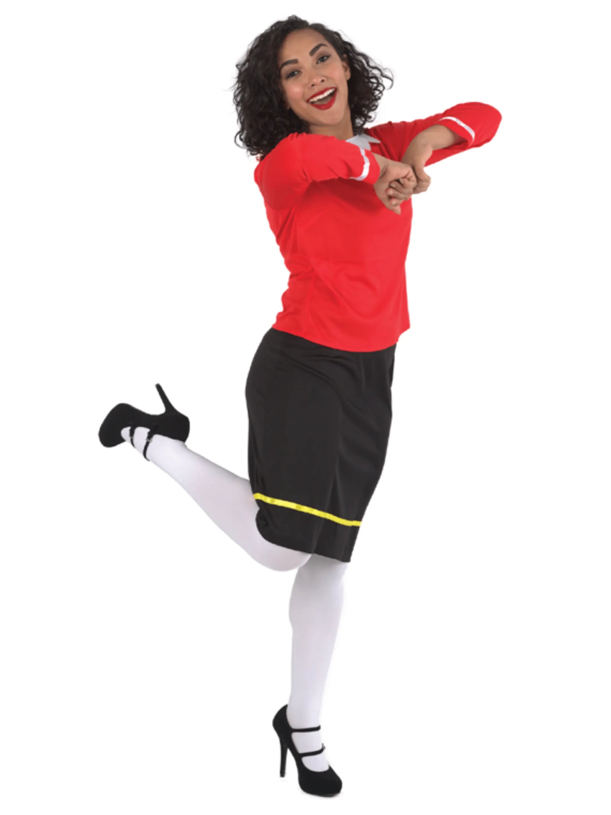 Sailor Woman Costume size large. Made of 100% synthetic materials. Hand wash with gentle soap and line dry.