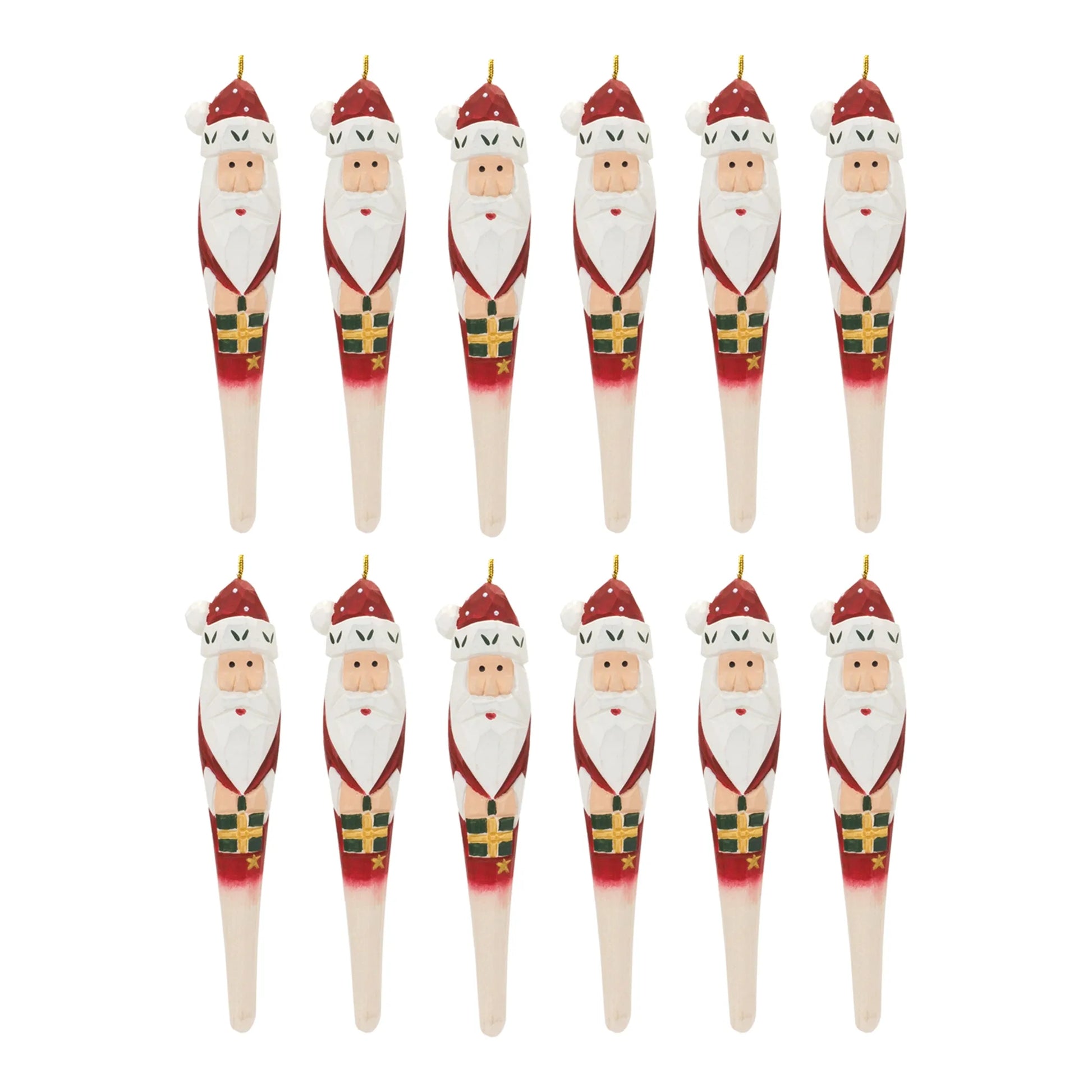 Get into the holiday spirit with this set of Santa Drop Ornaments! Whether you're adding a touch of cheer to your tree or gifting to a loved one, these ornaments will definitely bring smiles to your home. With festive red and white tones, carved design, and a quality solid wood construction, these joyful decorations are sure to last for years to come! Add a little something special this holiday season with this memorable set of ornaments.