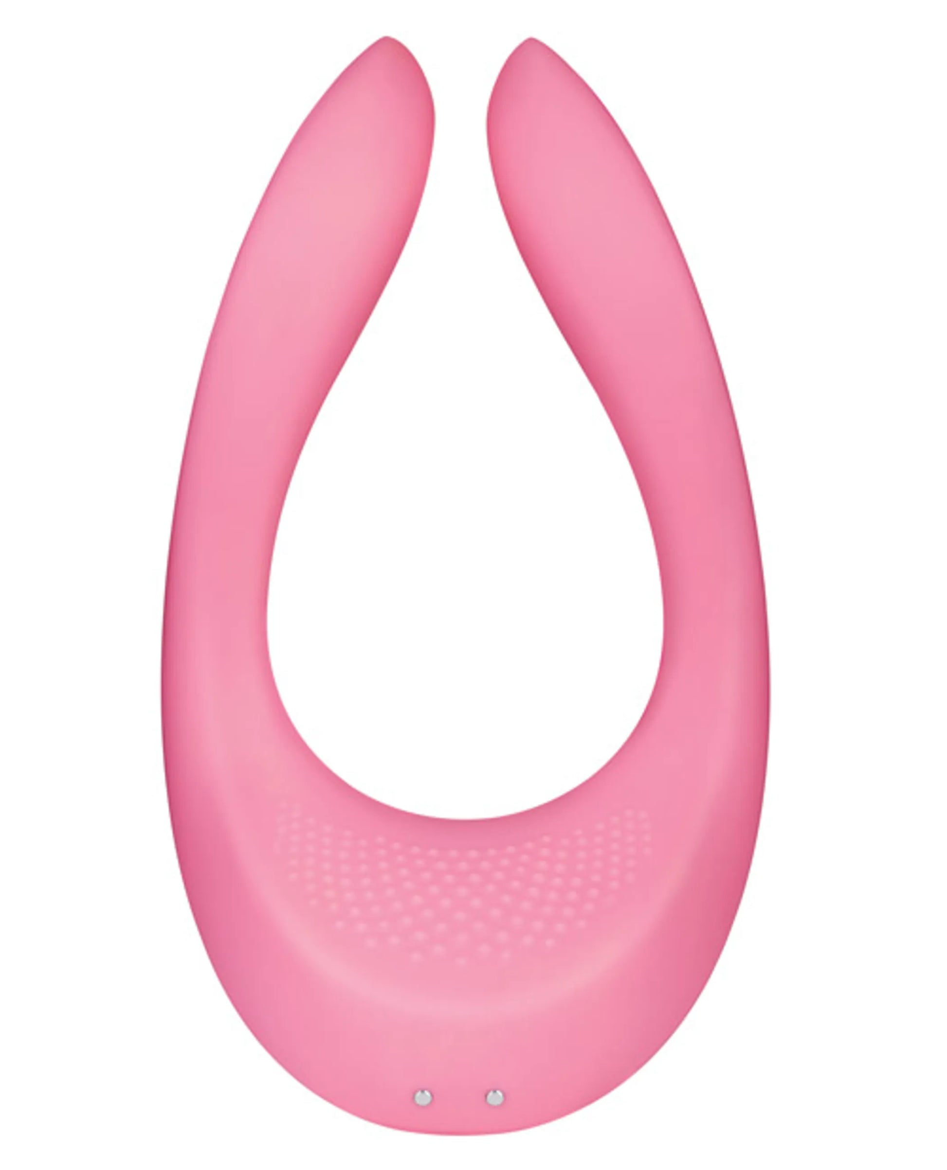 Satisfyer Partner Multifun 2 Endless Joy Vibrator find all the hot spots with 3 motors. The Multifun 2 pleases you with a very special shape that can be artfully integrated into any kind of lovemaking and has 3 powerful engines: While one is in the upper main body, each of the other two lower points of its pleasure arms provide good vibes. This means: whether against, on top of, in, under, or in between the sky blue all rounder stimulates you the way you need it! The two lower motors can be controlled separately from the main motor, so that both parts of the vibrator have 10 exciting vibration programs to offer. With 2 buttons, you can create as many as 100 combinations. In terms of versatility, the silicone partner pleasure bringer is hard to beat: the rounded shape is gently flexible, but is still robust. The silicone surface of the skin pleases the skin with a silk matte Silk Touch Finish and also has a delicately lined structure on the underside of the voluminous applicator head. If you put the toy around the penis and testicles during sex from above and let the inclined head with its structured side face forward, you will stimulate both his crown jewels and your pleasure pearl at the same time. Of course, you can also turn the whole thing forwards or downwards. With the two tips you can also make the foreplay particularly stimulating and massage nipples, the clitoris, or labia. Even the G-Spot, the man?EUR(TM)s perineum, or the tip of his penis can be lovingly discovered by the Multifun 2! In total, there are more than 14 applications to explore even in the bathtub, because Multifun 2 is waterproof (IPX7). If your new bed mate needs more juice, you just recharge it with the included USB cable and look forward to the next round! 2021.