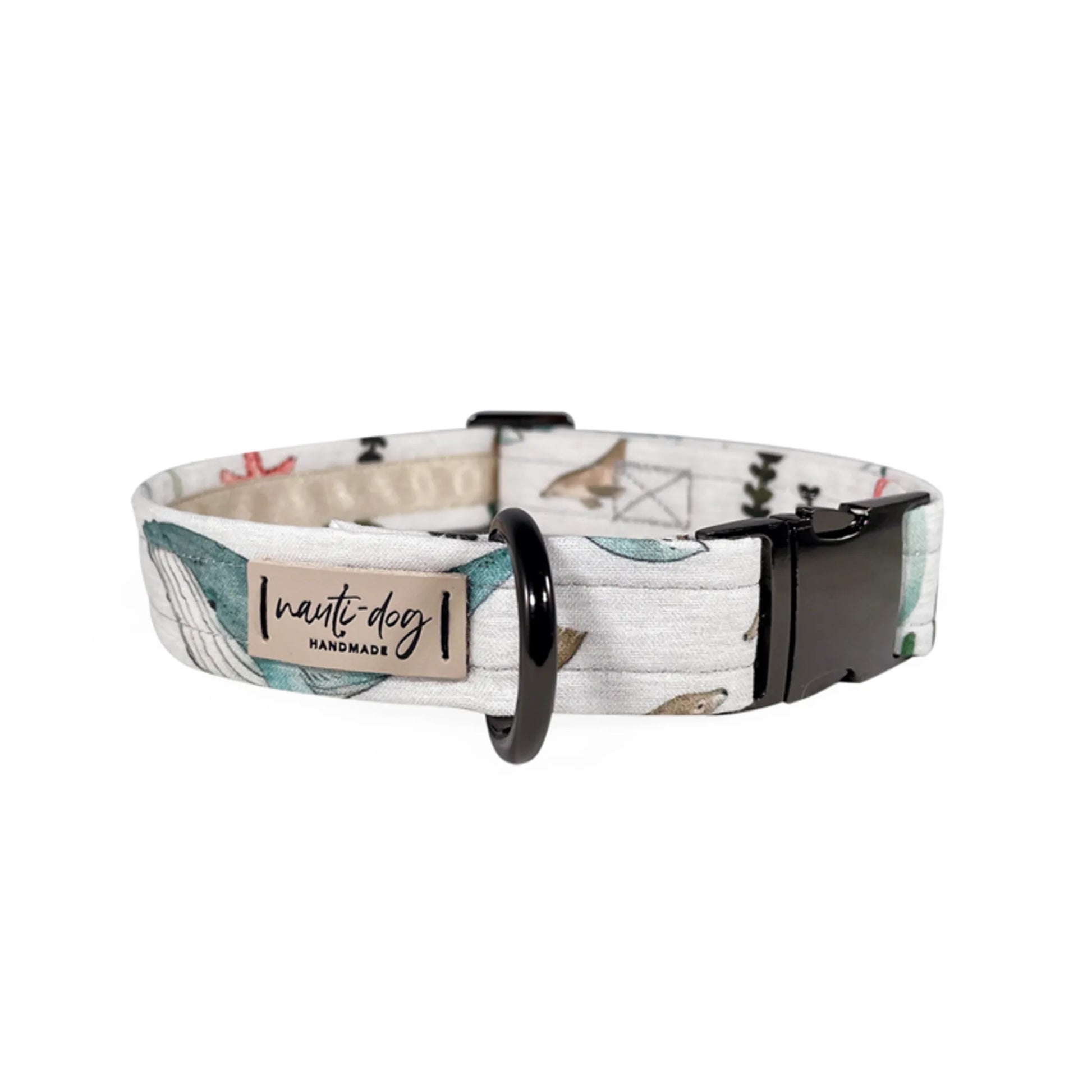 Adorable otters, blue whales and seals frolic in this adorable print on heather grey. Our buckle collars are made from high-quality, designer-cotton prints in one of our favorite nautical patterns, polyester lined and reinforced with a strong nylon webbing inner. Don?EUR(TM)t forget to make your nauti-pup?EUR(TM)s new look complete with a complimenting leash and bandana-style collar cover accessories.