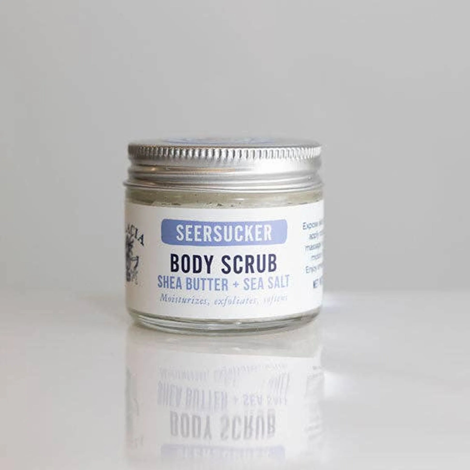 A blend of island fragrances of cool cotton and crisp ocean breeze, Seersucker Salt Soak is a soft, clean fragrance. Our salt scrub is a natural exfoliator, made with 100% pure Atlantic sea salt. Salt is a natural cleanser and removes stubborn scents and grime from hands after cooking. It also cuts tough adhesives, oils, sap and grease. The combination of thick, natural oils act as a binding agent, making our scrubs good for hands or all over the body - from the neck down.