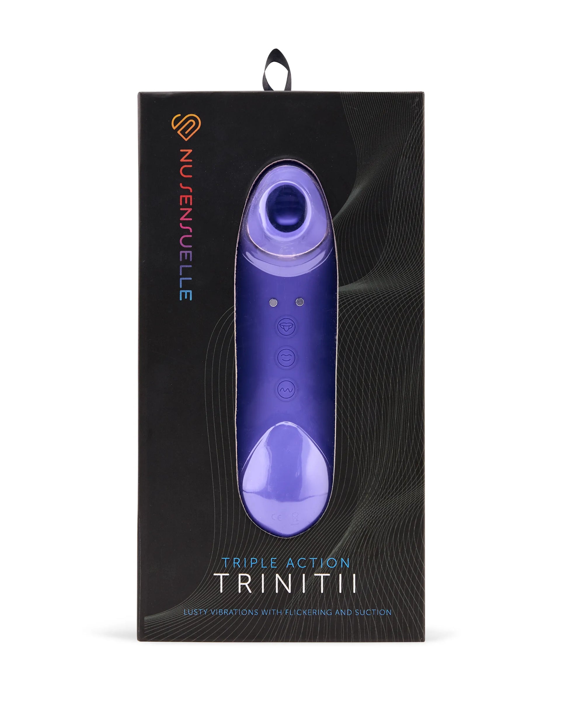 Sensuelle Trinitii Ultra Violet Clitoral Vibrator 15 functions and modes. 3 toys in 1. Nu Sensuelle knows clitoral stimulation is the key to climax for of us. But we all experience pleasure differently. Some enjoy intense stimulation, some prefer gentle. So, finding a toy that works for you can be challenging. That is why we created Trinitii. Living up to its name, Trinitii combines three separate sensations to deliver incredibly unique and powerful clitoral stimulation. One look at Trinitii lets you know it is not your typical toy. Start by placing Trinitti?EUR(TM)s soft, open tip over the clitoris to experience gentle suction. This indirect stimulation is perfect for those who do not always want direct contact. Next up is Trinitii?EUR(TM)s flickering tongue that mimics the sensation of oral sex. And last, but not least, Trinittii also vibrates to add one final thrill you will feel wherever it touches your skin. The result is layered stimulation like you have never experienced. And, of course, you can control all three forms of stimulation independently. Trinittii offers 15 vibration patterns, 7 suction intensities, and 4 speeds of flickering tongue movement, allowing you to customize your pleasure every time. Features: three way, layered stimulation. Suction, flickering tongue and vibration. 15 vibration patterns. 7 suction intensities. 4 flickering tongue speeds. 100% body safe materials. USB Rechargeable Vibrations. Product specifications: materials made using body safe Silicone, ABS Products accents. Size: 2.09 inches by 6.26 inches. Bulk weight .410 of a pound. Speeds + Suction Intensities + Tongue Speeds: 15 speeds + 7 suction intensities + 4 flickering tongue speeds. Charge type: Magnetic USB charging port. Charging time: fully charged within approximately 3 hours to 4 hours. User time: 30 minutes to 40 minutes. Interface: 3 buttons of operation. 2 years warranty. Please note package is changing color from white to black soon. Categories: Vibrators, Clitoral, Rechargeable Vibrators, Sex Toys for Women, Tongue Vibrators. 2023.