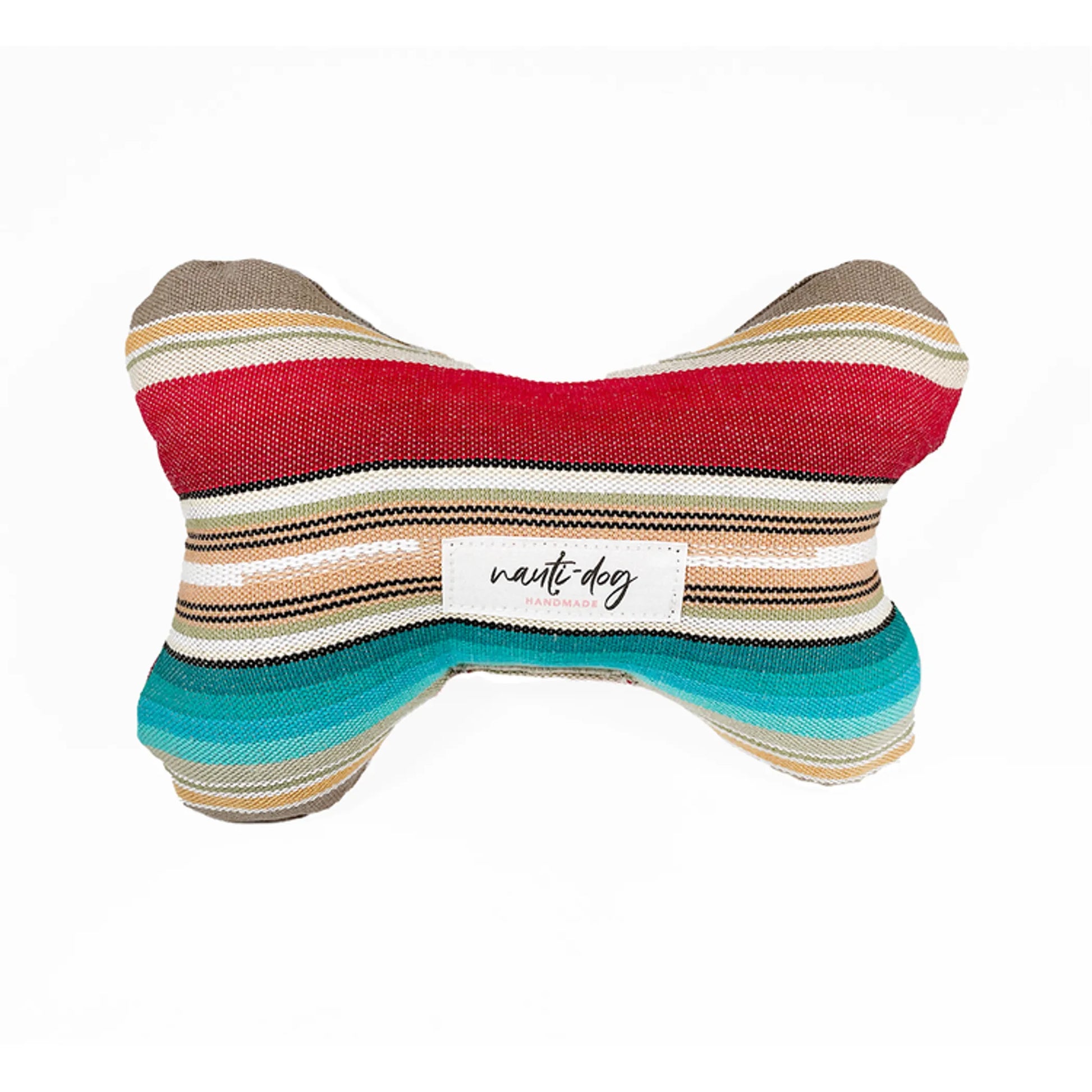 This gorgeous southwestern pattern is the perfect compliment to any nauti-dog handmade essential. Made from durable canvas fabric and stuffed with a squeaker and plush poly-fill, this toy is both snuggly and fun. Available in the shape of a whale, bone or bumper.