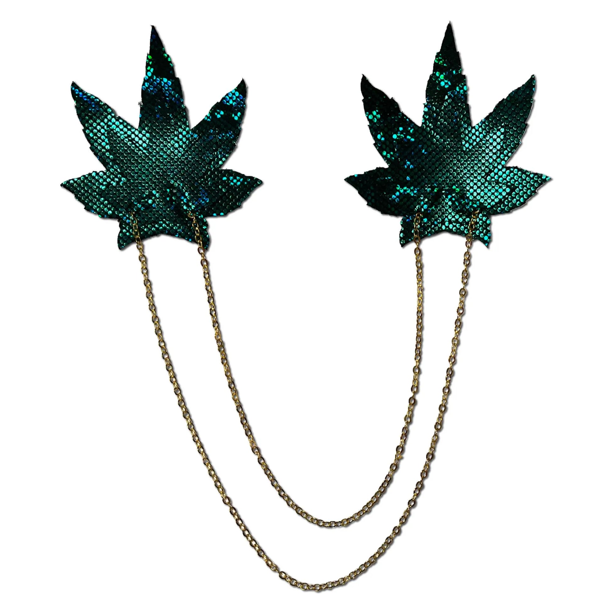 Shattered Glass Disco Ball Weed with Gold Chain Nipple Pasties from Pastease Brand. Lets start a chain reaction. Chains: Shattered Glass Disco Ball Green Weed with Gold Chain Nipple Pasties by Pastease are hand made in the USA of soft form fitting material that forms seamlessly to curves and resists wrinkling over hardening nipples. Just peel and stick on clean, dry skin. All Pastease feature latex free, medical grade, waterproof adhesive that stay securely in place for as long as you like and until they are gently removed. Conceal or reveal with Pastease Nipple Pasties when worn with a sexy outfit, daring bikini, sheer top, revealing dress, Hefty bag, body lotion, crazy costume, party theme or nothing at all! Dimensions 3.1 inches by 3.2 inches. Coverage diameter 1.7 inches. Pastease are the fun maker that brings out your inner Tease! All Pastease products are hand made, so the finished product you receive may vary slightly from the posted image. Go get your sexy fun freedom on! XOXO Pastease! Categories: Lingerie, Clothing, Naughty Role Play, Nipple Play, Sex Toys for Women, Pasties and Accessories. Primary image package. How to apply pasties image. 2023.