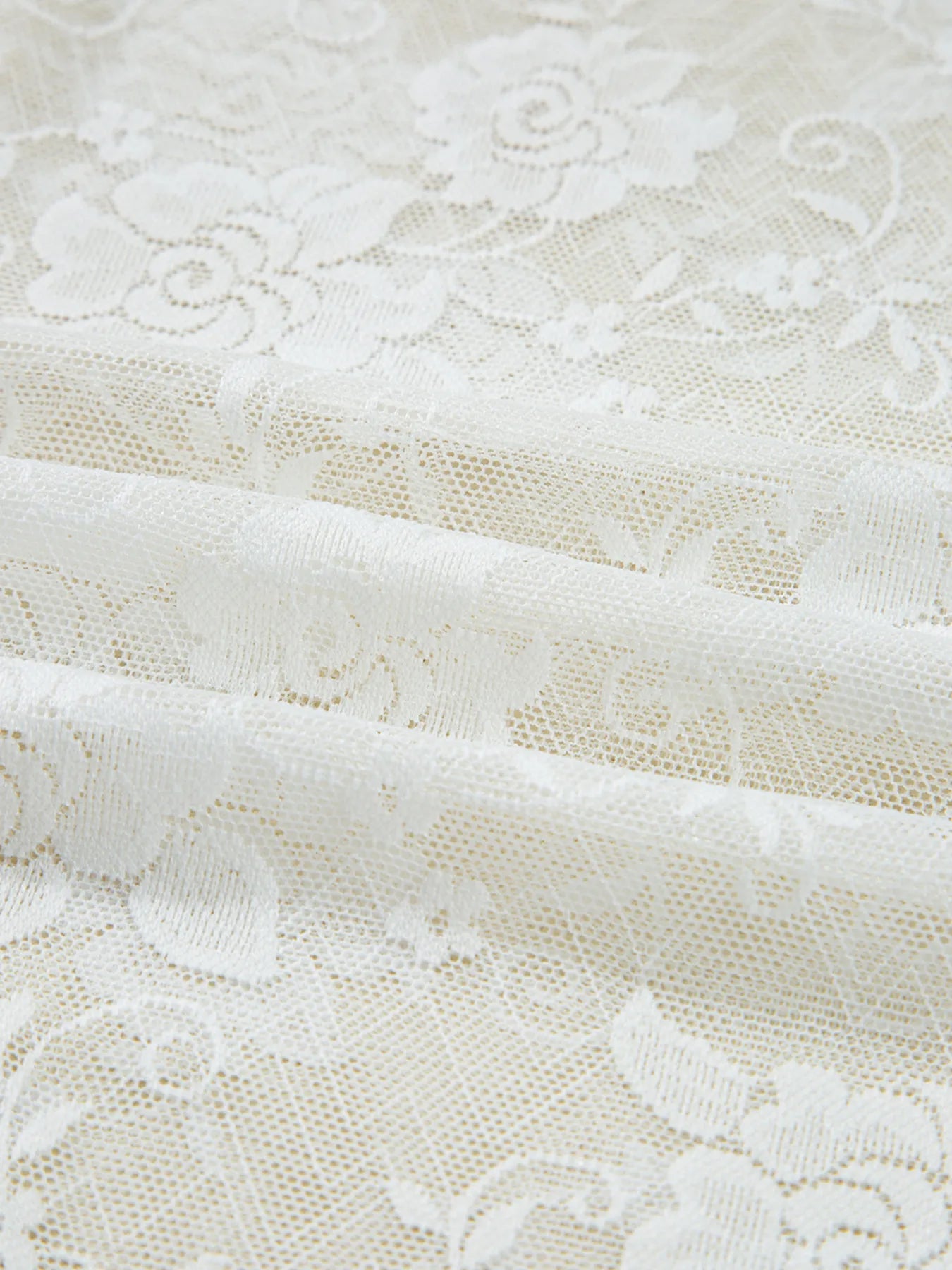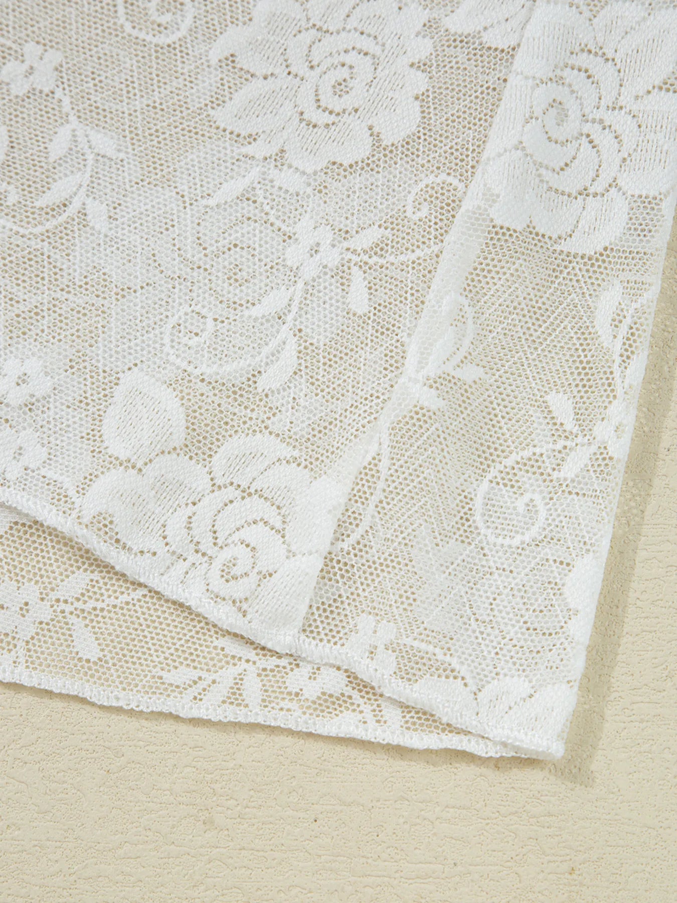 Sheer Floral Lace Mesh Mock Neck Long Sleeve Top