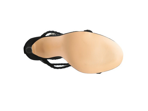 Braided Suede straps that settle on feet elegantly, this pair of stilettos keep all your formal dates sorted.