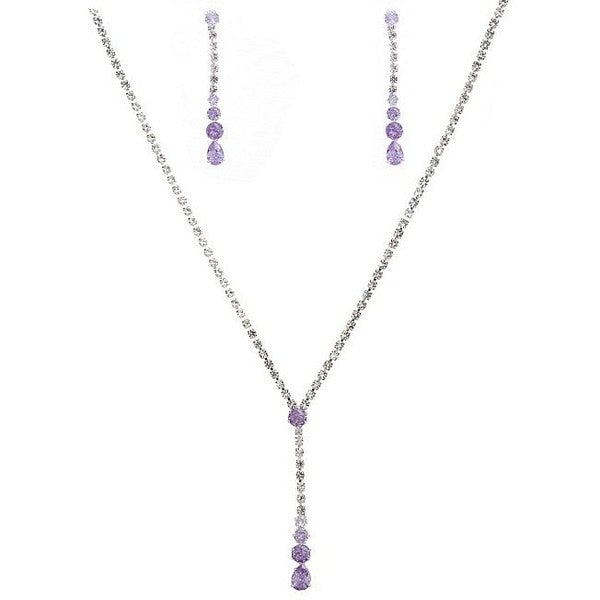 - This elegant necklace set features shimmering cubic zirconia in a modern Y shape design.