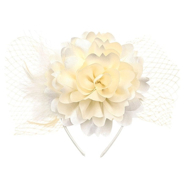 Side Mesh Flower Feather Gatsby Fascinator