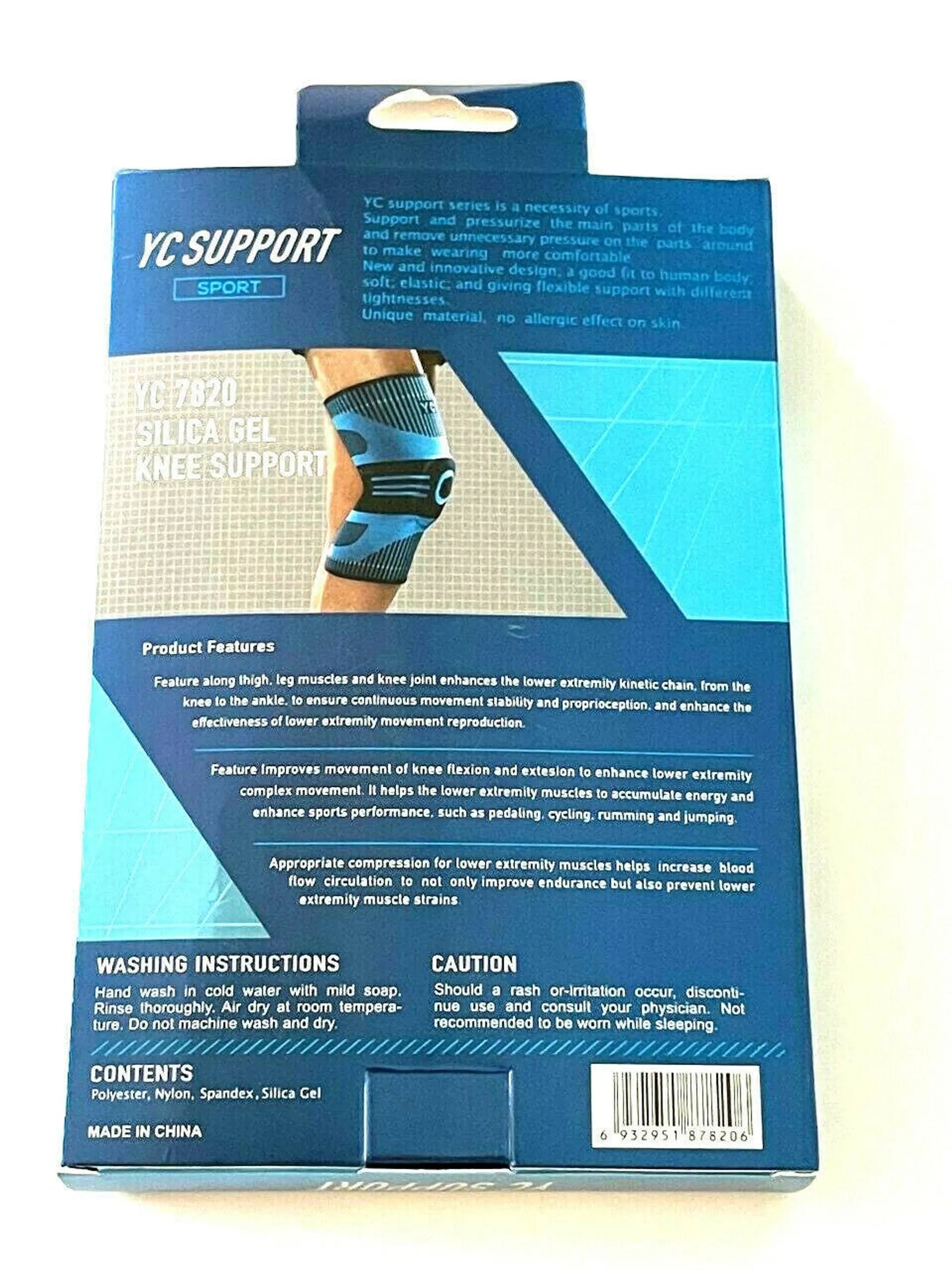 Silica gel knee brace supporone size fits alllonger durabilityfeatures along thigh, leg muscles and knee joint that the lower extremity kinetic chain from the knee to the ankleaids with joint and muscle recoveryoffers rejuvenating relief from arthritis, aches, and painsalso helps with minimizing injury, offers optional muscle support between workouts and casual everyday activitiesunisexmaterial: silica gel, polyster, nylon, spandex.