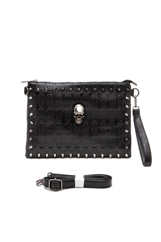Skull Studs Convertible Crossbody Clutch Swing Bag