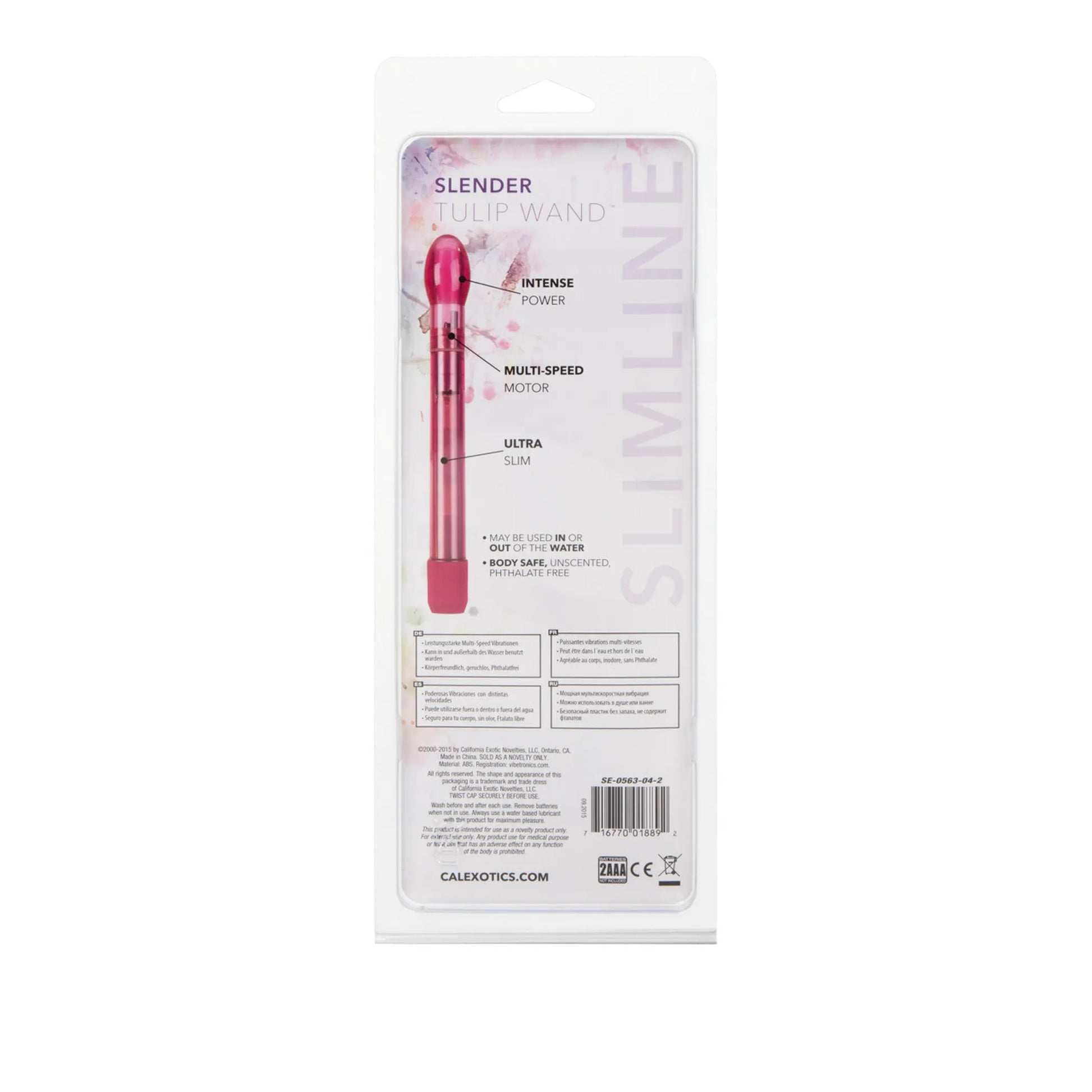 Slender Tulip Wand Magenta Pink Vibrator from California Exotic Novelties. Allow your orgasms to blossom with the Cal Exotics Slender Tulip Wand. This innovatively shaped vibrator will put the pleasure in your petal no matter where you use it. The sex toy is moulded from a sleek, easy to clean ABS Plastic material, which you will find not only sends shuddering orgasms through your body during clitoral stimulation but also if inserted. Your body is not going to know what hit it! This adult toy is a perfect little vibrator for carrying discreetly round with you. At 6.75 inches long and 0.75 inch wide, you can carry it around with you wherever you go, in a purse or pocket, and nobody will ever know that you are ready to just whip it out whenever you need to. Why wait for that toe curling orgasm when you can have it whenever you desire? The Slender Tulip Wand is one of our most powerful, sleek and smooth traditional vibrators. It comes with a multiple speed function so you can tease your pleasure zones into submission before you tip yourself over the edge. Its Tulip shaped tip allows you to pinpoint your pleasure for even more explosive orgasms. They recommend using this vibrant toy with a water based personal lubricant for instant gratification and pleasure. Ultra thin vibrating wands come with uniquely shaped Tulip tip. The fatter tip is still less than 1 inch thick at its thickest point. The top bulb is about 1.25 inches long. Vibrator measures 6.75 inches long by .75 inch wide. Bulk weight 1.8 ounces. Vibrating sex toy requires 2 AAA batteries, not included. Do not leave batteries in the vibrator between uses. A water based personal lubricant is recommended. Cal Exotics categories: For Women, Vibrator, Vibrators. Slender Tulip Wands is a trademark for California Exotic Novelties. Sex toys and sexual wellness. Categories: Vibrators, Classic Vibrators, Firm, Hard Vibrators, Sex Toys for Women. 2023.