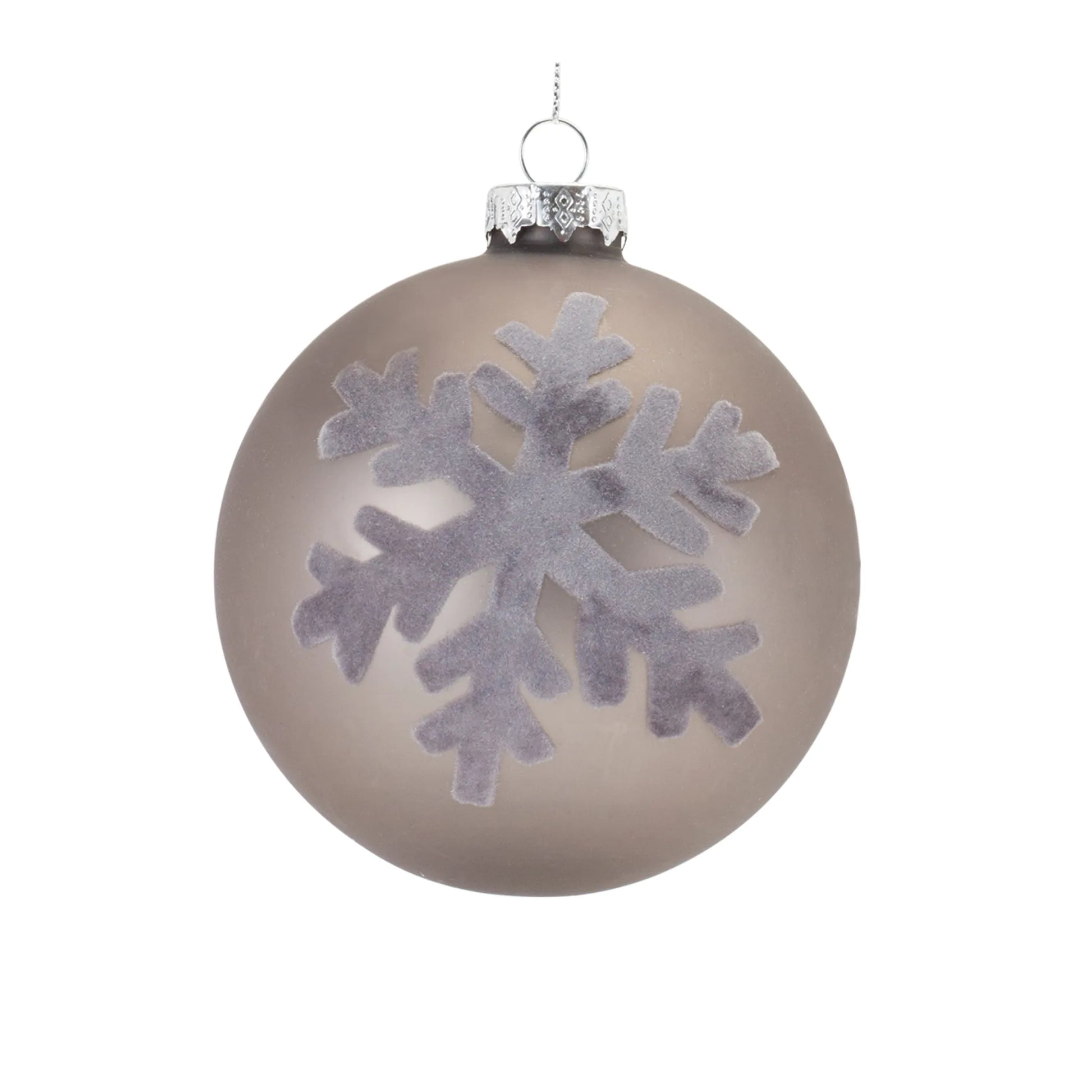 Adorn your Christmas tree and holiday decor with this stunning set of Snowflake Ball Ornaments. Featuring 6 pieces, the chic gray tones paired with the snowflake design is the perfect combination to create a memorable display. The quality glass composition and delicate silver string hanging accent is sure to endure for seasons to come. Whether you're adding a touch of cheer to your home or gifting to a loved one, these ornaments will definitely bring smiles.