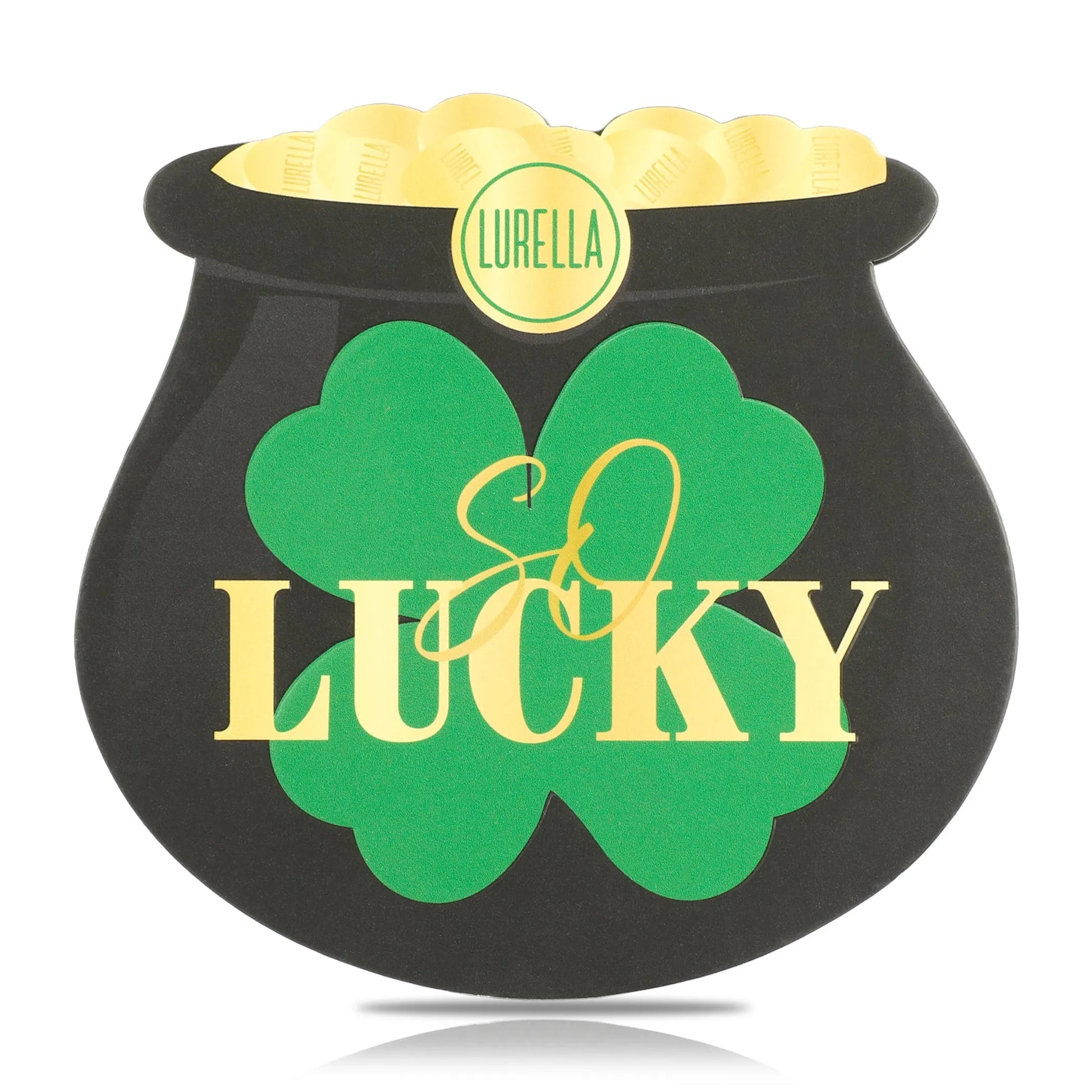 The "So Lucky" eyeshadow palette is a captivating collection of seven shades, each designed to celebrate the essence of good fortune and festivity. This palette takes the vibrant spirit of St. Patrick's Day and encapsulates it in rich golds, vivid greens, and a shimmering black, elevating traditional hues with a touch of sparkle. Alongside, a versatile nude shade complements the array, allowing for endless creativity. The shimmer black adds a unique twist, perfect for transitioning from a day of celebration to evening glamour. Formulated for seamless application and lasting wear, "So Lucky" ensures your look remains flawless throughout the festivities. Dive into this palette for a blend of luck and luxury in every stroke.