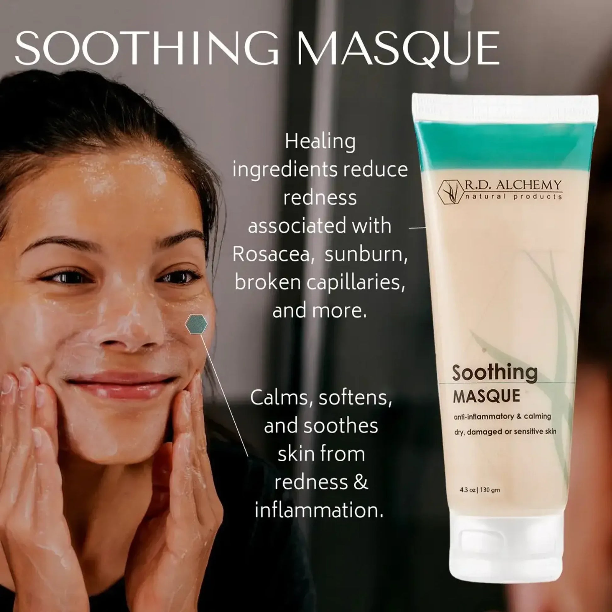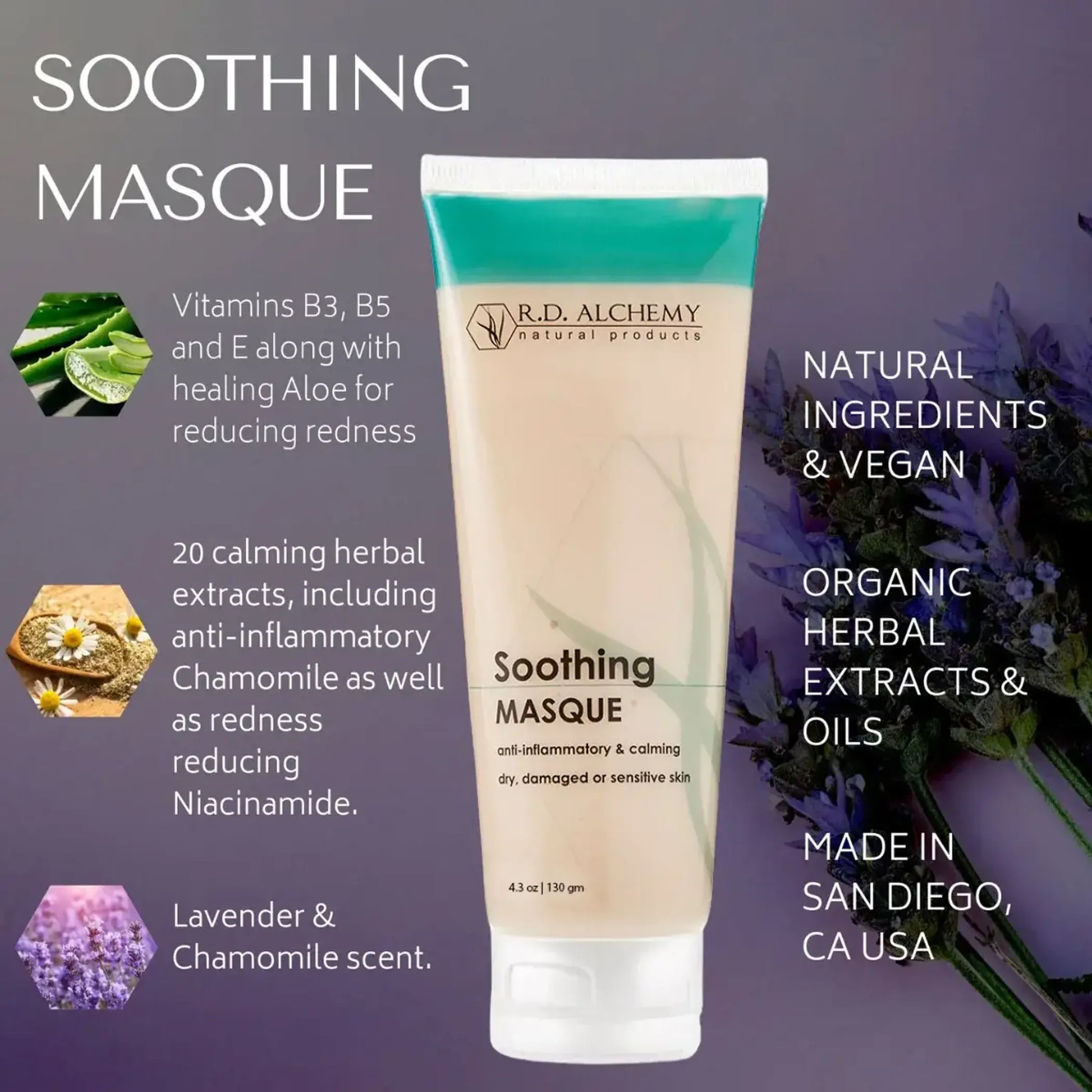 Some days are better than others and those other days can be a beast on your dry, delicate and put through the ringer skin. From sunburn, waxing and laser treatments to Rosacea, Acne and extractions your skin can see its share of abuse. Sensitivity, redness, inflammation and dryness can result leaving your skin in an unbalanced, irritable and angry state. Apologize to your skin and rescue it from the ravages of life to cool on contact and calm inflammation and redness. This soothing, creamy mask provides 20 calming herbal extracts, including anti-inflammatory Chamomile as well as redness reducing Niacinamide. Designed for all skin types but especially potent for those suffering from Rosacea, redness, sunburn or post laser / wax inflammation; this enriching and natural formula contains vital B3, B5 and E vitamins along with healing Aloe to reduce redness associated with Rosacea, sunburn, or broken capillaries. Your skin tone will be more even, less irritated, softer and smoother.