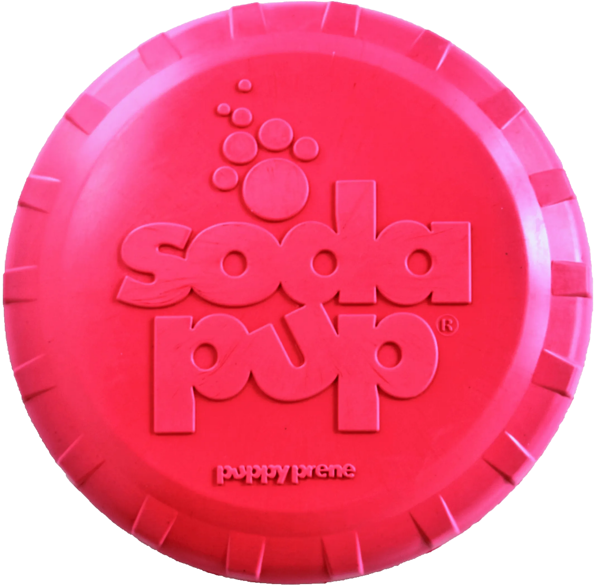 Natural rubber flyer cleverly designed in the shape of an old-fashioned bottle cap for retrieving with your dog. Softer rubber formula is gentle on puppy mouths.