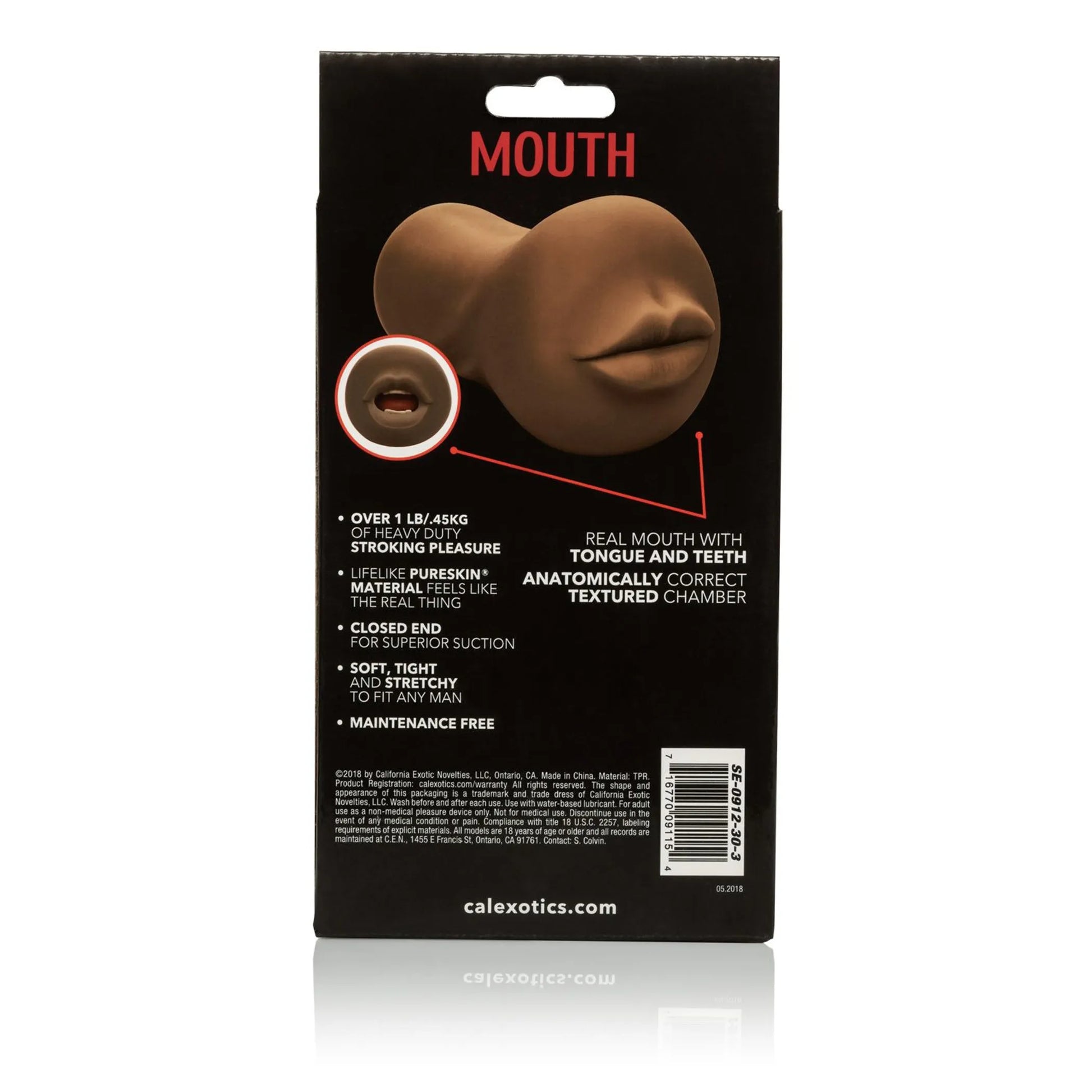 Stroke It Mouth Stroker Brown from California Exotic Novelties. The Stroke It collection brings you the Mouth Stroking Sleeve, made to thrill with every extra tight Stroke. Dive deep into over 1 pound of heavy duty Stroking pleasure with anatomically correct Mouth and an extra tight, closed ended chamber. Our plump Stroker Sleeve is great for anyone wanting a little extra oomph in their solo play. Over 1 pound of Pure Skin Thermoplastic Rubber TPR material make for the truly heavy duty, pounding pleasure you have been craving. The indulgent Stroker has a textured, anatomically correct chamber for explosive stimulation. Use this close ended sleeve with ample lubrication for powerful suction worthy of your naughtiest fantasies. Pure Skin Thermoplastic Rubber TPR is a super soft, ultra stretchy material with a unique, life like feel delivering pure satisfaction in every Stroke. This durable Sleeve is easy to use, easy to clean and requires no special care. Prior to and after each use, wash sleeve internally and externally with warm water and soap, then disinfect with the Universal Toy Cleaner. Color: Brown, Dark Skin Tone. Materials Thermoplastic Rubber TPR. Features Phthalate Free. Allergens N/A. Measurements 7 inches by 3.75 inches masturbator. Weight bulk 20.2 ounces. Package 22.4 ounces. Package 3 inches by 4.5 inches by 8.5 inches. Categories: Male Masturbators, Sex Toys for Men, Solo Masturbators, Mouth Strokers, Masturbation Sleeves. 2023._x000D_