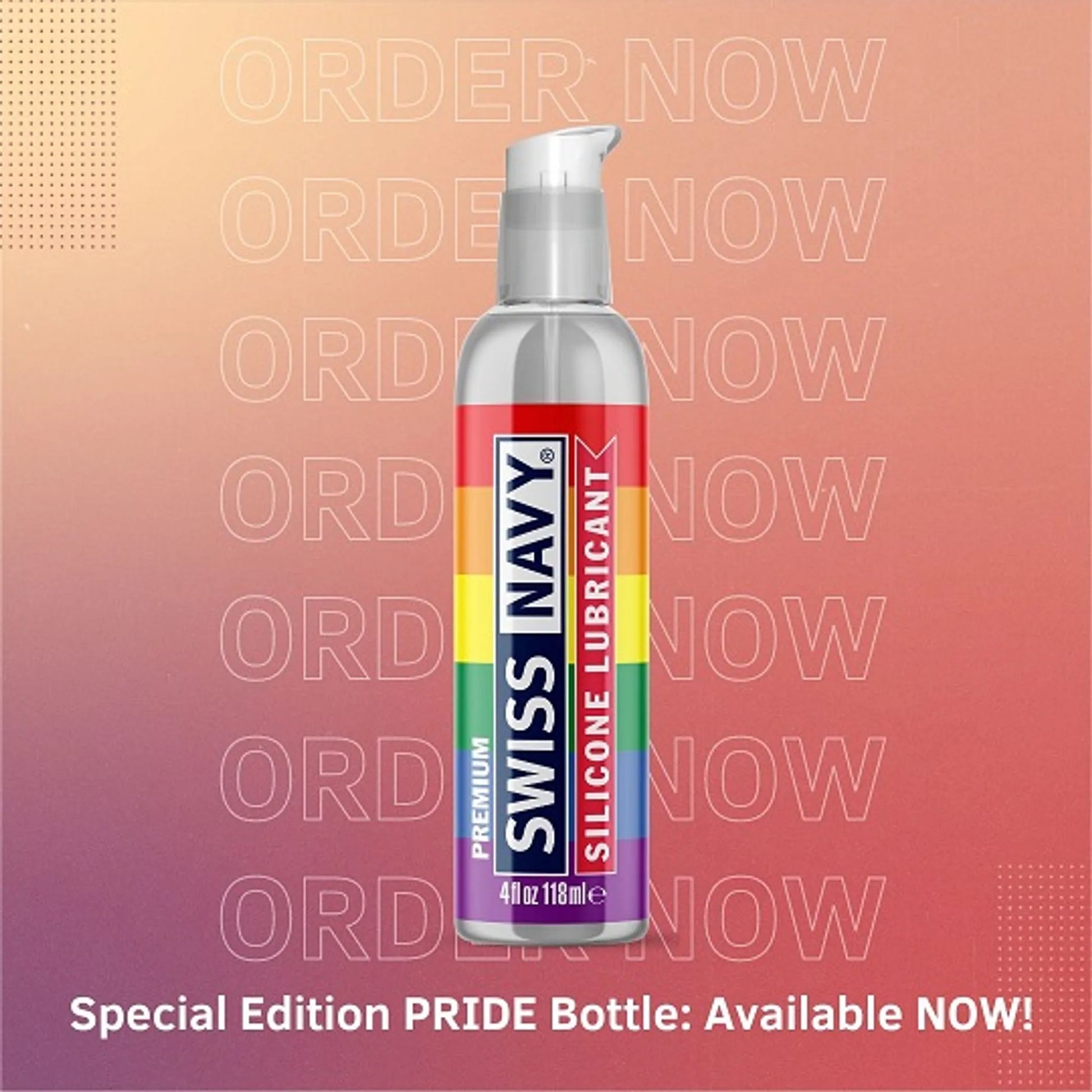 Swiss Navy Pride Edition Lubricant blends our Premium Silicone Lubricant, made from the highest quality ingredients, and our ongoing support of spreading the pride._x005F_x005F_x005F_x005F_x000Dx005F_x005F_x005F_x005F_x000D_Silicone is extra nourishing to sensitive skin and is formulated to be ultra long lasting, requiring less reapplication. _x005F_x005F_x005F_x005F_x000Dx005F_x005F_x005F_x005F_x000D_Silicone lubricant is naturally hypoallergenic and waterproof, so it doesn't dry out quickly, making it ideal for people looking for smoother intimate experiences. Plus, silicone lube does not contain any water, is pH-neutral, and won't interfere with vaginal pH._x005F_x005F_x005F_x005F_x000Dx005F_x005F_x005F_x005F_x000D_As the population ages, there is a great need to have products available that can relieve the symptoms of aging and contribute to greater personal intimacy. Silicone personal lubricant is a perfect product that can do this._x005F_x005F_x005F_x005F_x000Dx005F_x005F_x005F_x005F_x000D_Many postmenopausal women may benefit more from Swiss Navy Premium Silicone Lubricant since it is not absorbed and can help with dry, sensitive tissues._x005F_x005F_x005F_x005F_x000Dx005F_x005F_x005F_x005F_x000D_Ergonomic leak proof bottle design with locking pump_x005F_x005F_x005F_x005F_x005F_x005F_x005F_x000D_Single-hand pump for easy one-handed application_x005F_x005F_x005F_x005F_x005F_x005F_x005F_x000D_Truly long lasting lubrication with a velvety feel_x005F_x005F_x005F_x005F_x005F_x005F_x005F_x000D_Silicone formula uses the highest grade ingredients on the market