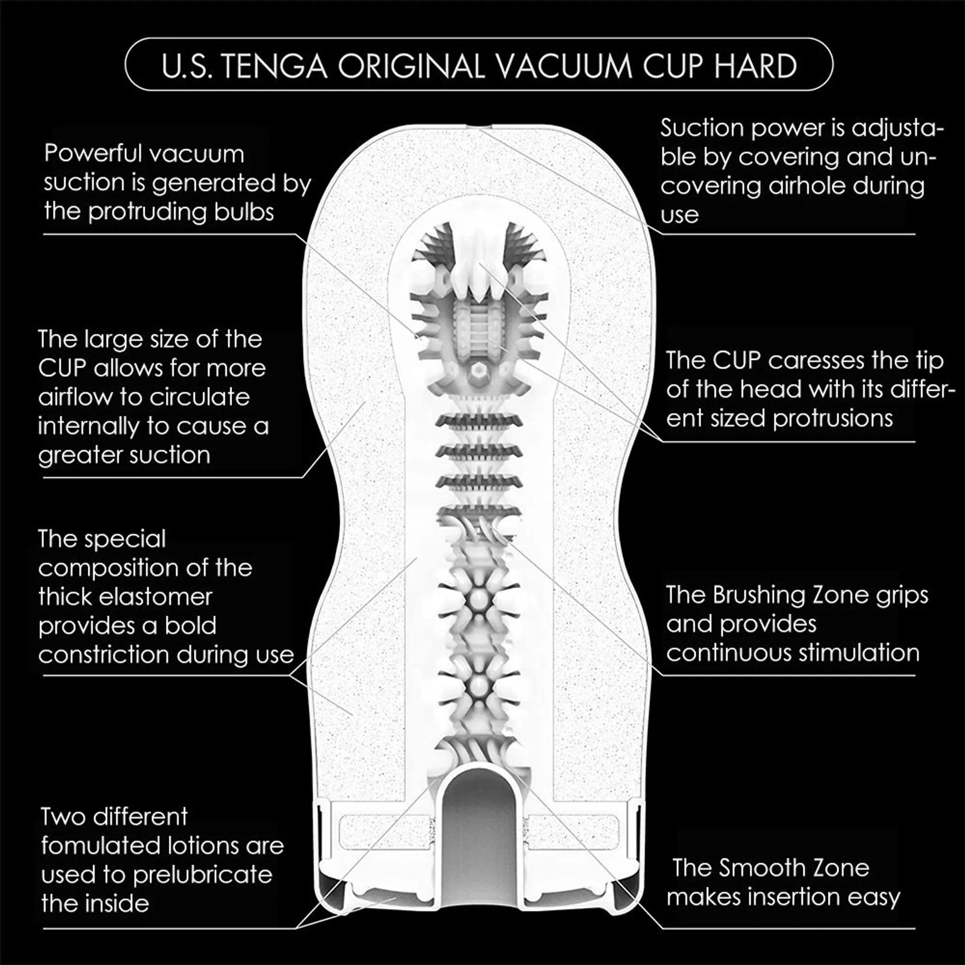 Tenga U.S. Original Vacuum Cup Strong stroker. New adult concept. Size 3.2 inches in depth by 3.2 inches in width by 7.1 inches in height. Insertion length approximately 6.7 inches. Insertion width approximately 2.8 inches. Bulk weight .49 pound. Other specifications: disposable, prelubricated. Materials: insert sleeve Thermoplastic Elastomer TPE. Casing Polyethylene PE. Lubricant ring Polyurethane PU. Lubricant Ring Lubricant: Water, Glycerin, Propylene Glycol, Hydroxyethylcellulose, Sodium Polyacrylate, Phenoxyethanol, Methylparaben, Hydroxypropyl Beta Cyclodextrin, IPBC. Internal Lubricant: Water, Glycerin, Sodium Polyacrylate, Phenoxyethanol, Methylparaben, Hydroxypropyl Beta Cyclodextrin, IPBC. Please note lubricants certified by EU Directive 76/768/EEC toxicological assessment. Categories: Health and Beauty Aids, Male Masturbators, Sex Toys for Men, Solo Masturbators. Video. Restricted, Amazon Restricted. 2023.