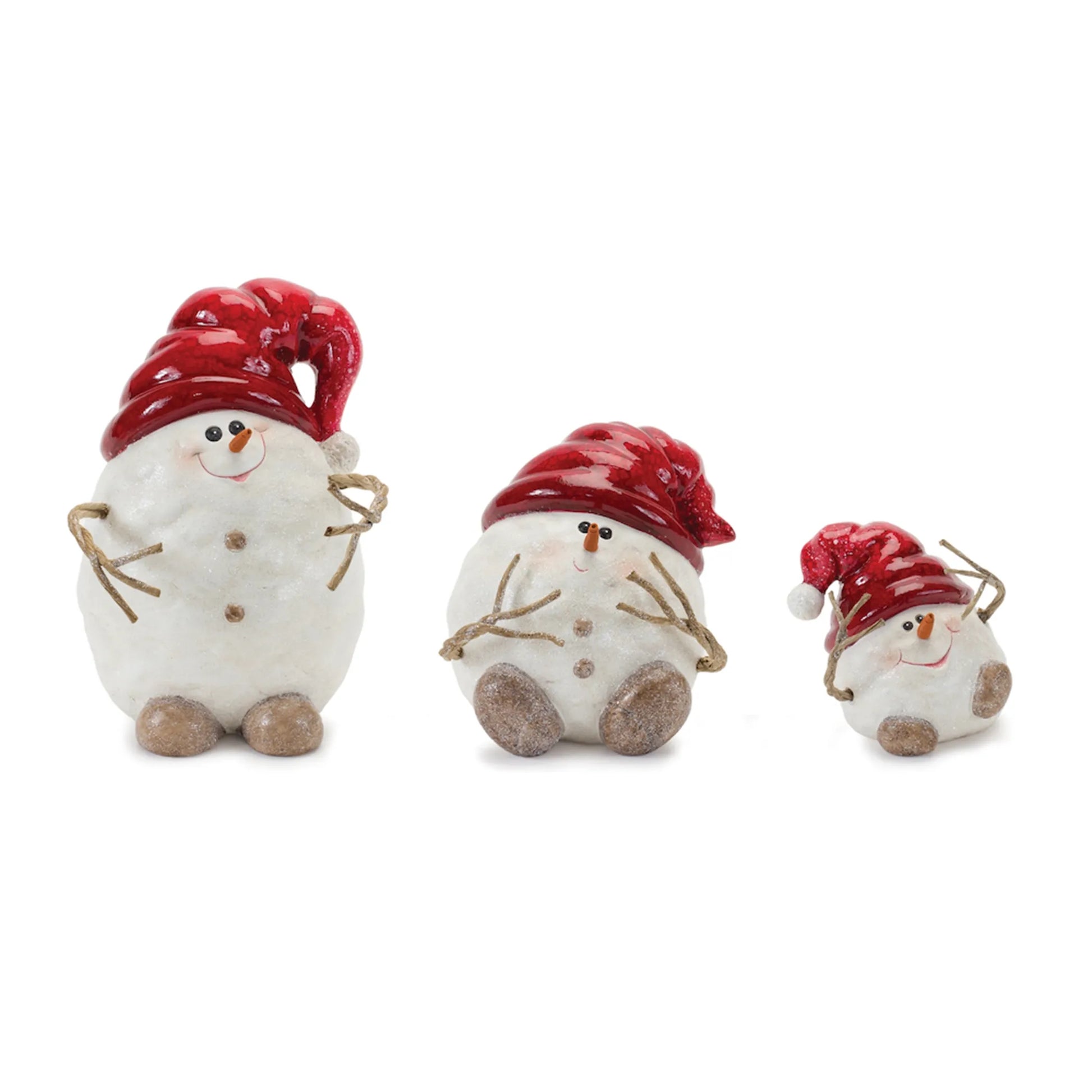 Deck your halls and tables with the perfect decorations this season! This set of Santa Hat Snowman Figurines bring festive cheer to your holiday decor with their whimsical Santa hats, bright and cheerful red and white tones, and lovely frosted glitter finish. Crafted from quality terra cotta to last for many holiday seasons, these figurines will bring a smile to your home. Add a little holiday spirit to your home today with these delightful Santa Hat Snowman Figurines!