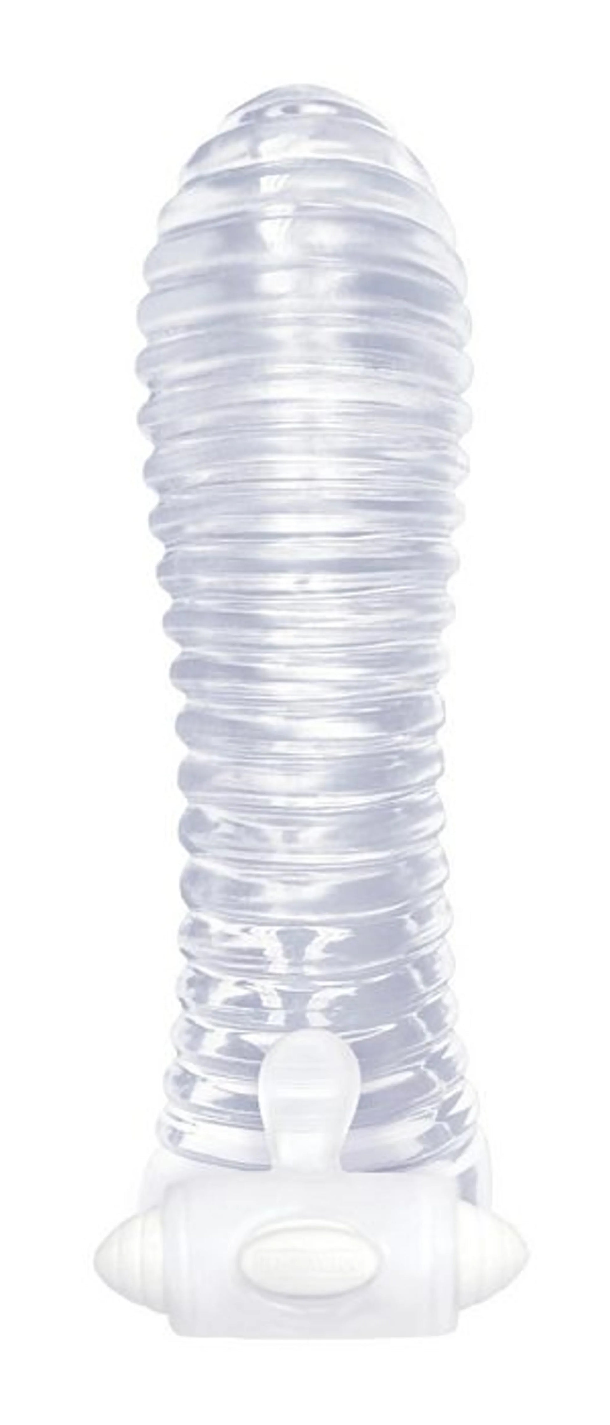 The Nines Vibrating Sextenders Ribbed from Icon Brands. These cool looking extenders come in three unique styles, and each is a generous 5.5 inches long. In a sexy smokey gray, they swirl, nub, rib and more, and add size and sensation to sex, at a sensationally affordable price. Amazingly textural sensations nightly. What could be more fun! Imale power bullet. Vibrating sleeve. One size fits most. Sleeve material Thermoplastic Rubber TPR, Bullet vibrator material ABS Plastic. Vibrating bullet requires 2 AG3 batteries, included.