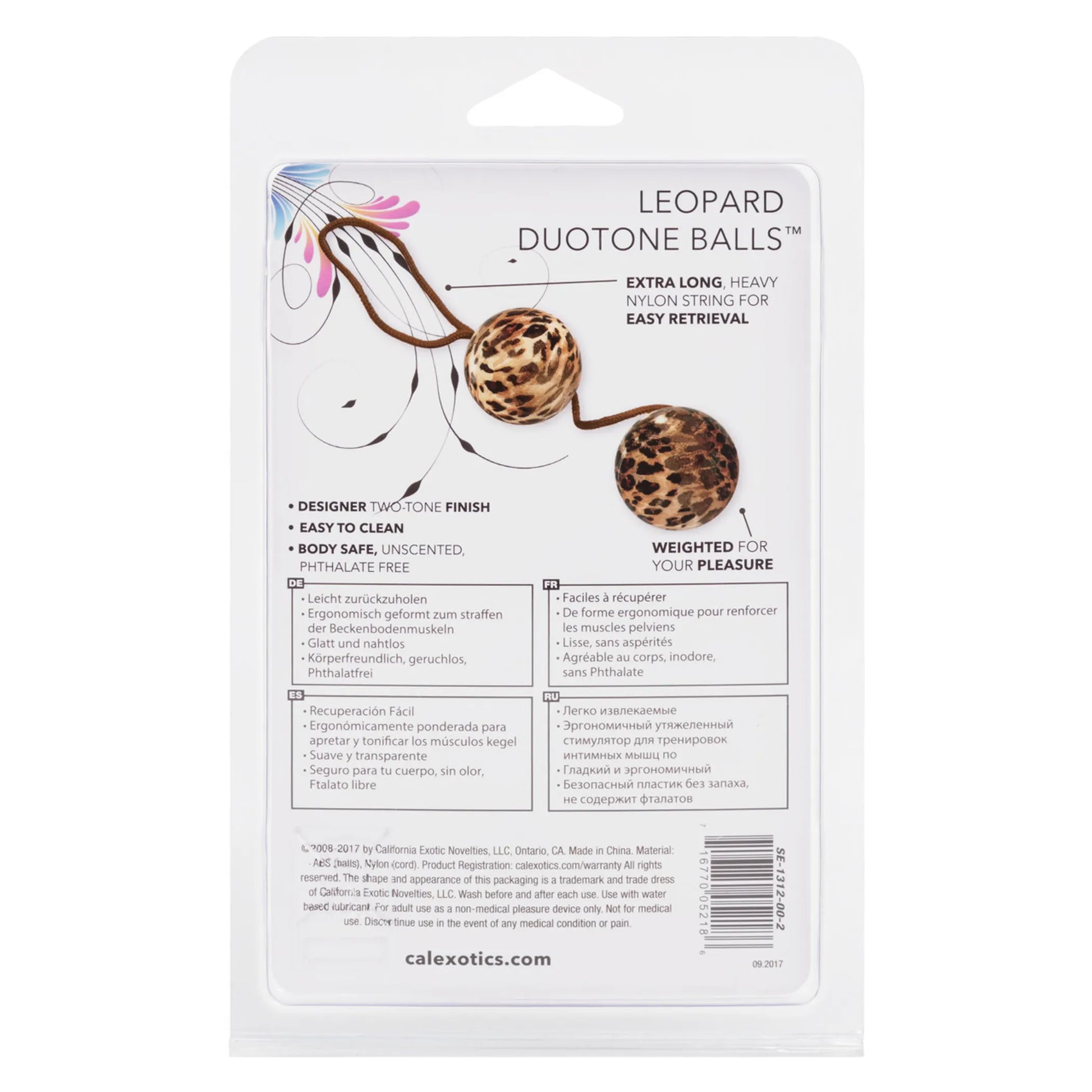 The Leopard Duotone Balls from California Exotic Novelties. Indulge your erotic animalistic side with the exotic Leopard Duotone Balls. The comfortably weighted, sensuous pleasure Duotone Balls are designed for easy Vaginal insertion and can be worn throughout the day. The discreet love balls stimulate and tone up the Pelvic Floor Muscles while delivering intensely pleasurable ripples of orgasmic delight. The multi-use pleasure Duotone Balls measure 1.25 inches in diameter and are made from durable, ABS Plastic with a distinctive Leopard Skin Print Finish. The smoothly contoured balls are attached to a strong Nylon Cord for easy and safe Vaginal insertion and retrieval. Designed for discreet internal use, the weighted Balls deliver a thrilling erotic tingle with every jiggle. Each time you move your body, the balls stimulate the Kegel Muscles for maximum toning and training. Wear the Balls for toning up and to enjoy spontaneous seductive sensations. The versatile Exercise Balls are perfectfor the first time and experienced users. For extended arousal slip the pleasure Balls inside the Vagina during intimate solo play explorations, or as part of your couples foreplay fun. To maximize sensitivity and to extend pleasure, always use a quality personal lubricant with this sex toy. After kegel muscle training, and climax, remove the Balls by gently pulling on the Nylon Retrieval Cord. Before and after every use, clean the Duotone Balls with a toy cleaner spray, or wash them in warm soapy water. Rinse with warm water. Pat dry before storing. The Leopard Duotone Balls are perfectly weighted animal print balls help with Vaginal/Pelvic Exercise. Also good for Bladder Control strengthening. Sturdy Nylon Retrieval Cord for safety. ABS Plastic. String attachment for retrieval. Ben Wa Style Balls. Multiple use scientifically weighted Balls can be used in conjunction with Kegel Exercises. Balls do not vibrate with batteries but rather with Kinetic Energy. Use for Pelvic Exercise by holding them in to strengthen muscles. Safe and pure for body and pleasure. Made using phthalate free, non-toxic materials: Duotone Balls ABS Plastic, Nylon Cord. Each Duotone Ball measures 1.25 inches in diameter. Always clean before and after use plus between partners. Orgasm Balls, Kegel Balls, women's health, unisex toy. The Leopard Duotone Balls is a registered trademark for California Exotic Novelties. Sex toys and sexual wellness. Categories: Sex Toys for Couples, Women, Pelvic Exercisers, Kegel Balls, Health and Beauty Aids, Duotone Balls. 2023.