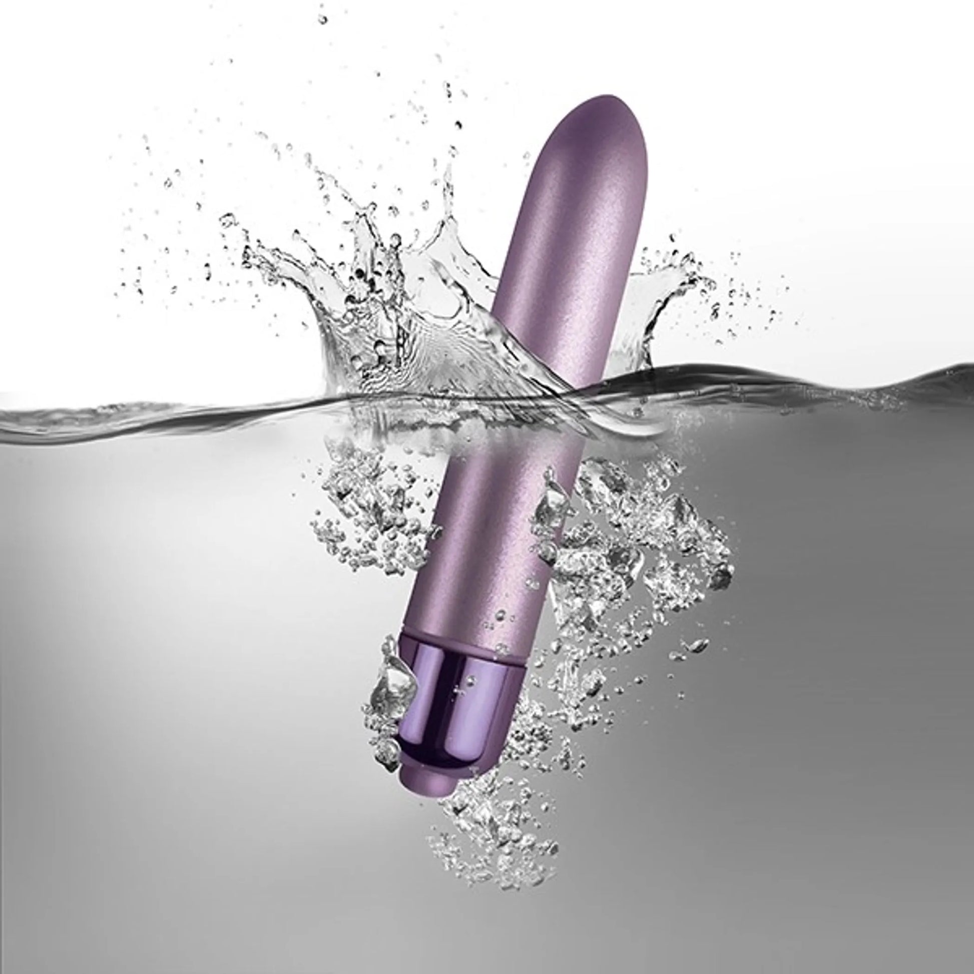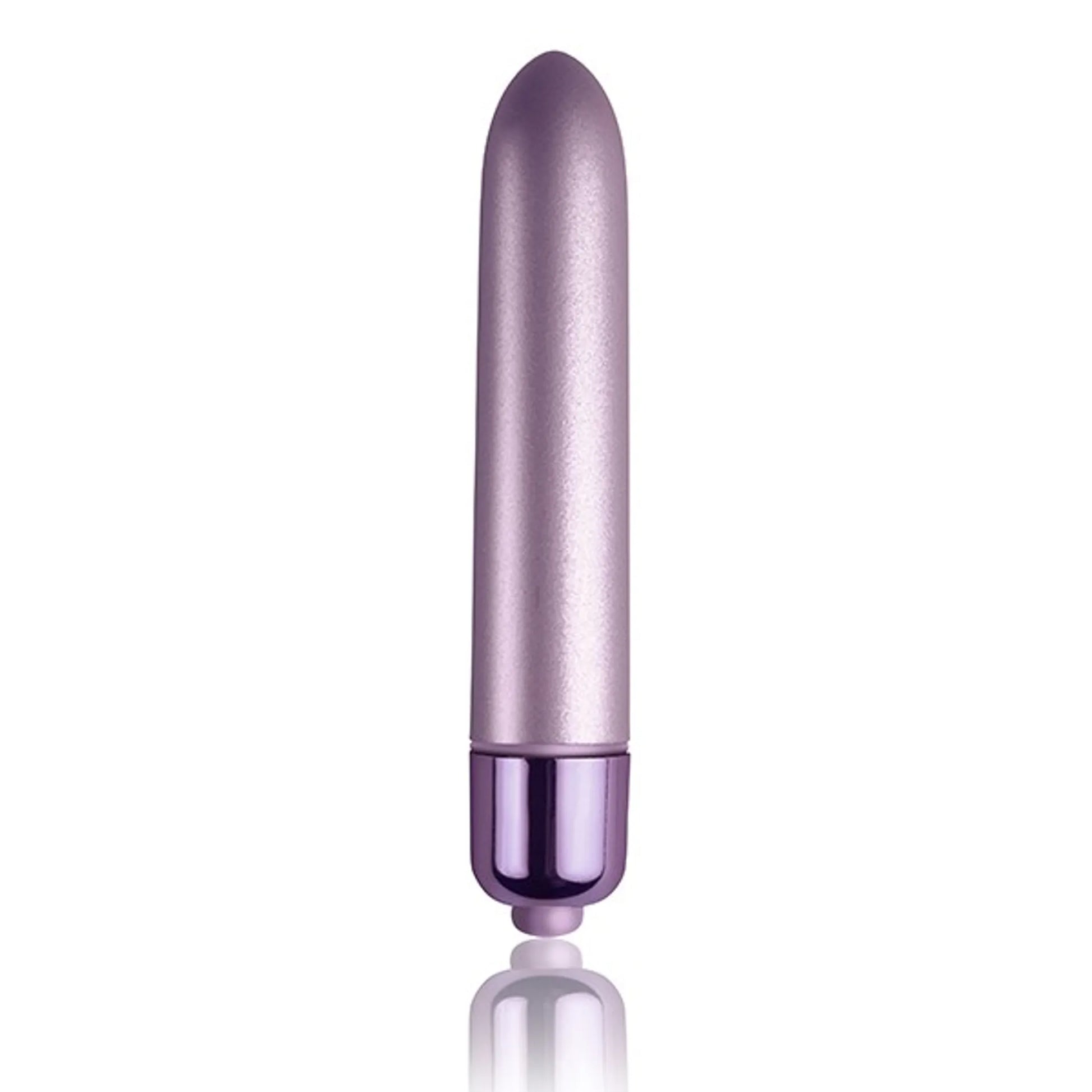 Touch of Velvet Soft Lilac 90mm Bullet Vibrator from Rocks Off Toys. The extra length of its shaft can caress those hot spots begging not to be left out. Hold it sideways and press deep vibrations into your favorite places to feel shuddering climaxes that leave you gasping for more. When with a partner, use your bodies to hold it on your clitoris during your most intimate moments, doubling the trembles that have you grasping each other close. Also, a tapered tip channels the pulsing vibration patterns to where you need them most. Whether you want to go in strong and fast, or treat yourself to a long and building climax that surges down to your toes, there are 3 speeds and 7 vibration settings to give you what you crave. Your next bath or shower can be truly revitalizing: enjoy a 100% waterproof and fully submersible vibe that lets time slip by with each divine explosion. What is more, your life is made simpler when it comes to changing the battery as it takes a AAA battery, often easy to find around the home when passion strikes. Enjoy this silver bullet vibrator's dazzling looks in three colors; blue, pink and purple. When you want to shoot to thrill with a compact vibrator that packs an array of ways to feel pure bliss, choose the RO-90mm. Features: tapered tip for precision stimulation. 90mm or 3.54 inches length body. 3 constant speeds and 7 vibration patterns. 100% waterproof and fully submersible. Bullet vibrator 1 AAA battery, included. Categories: Vibrators, Bullets, Eggs Vibrators, Sex Toys for Women, Vibrating Bullets and Eggs. 2024.