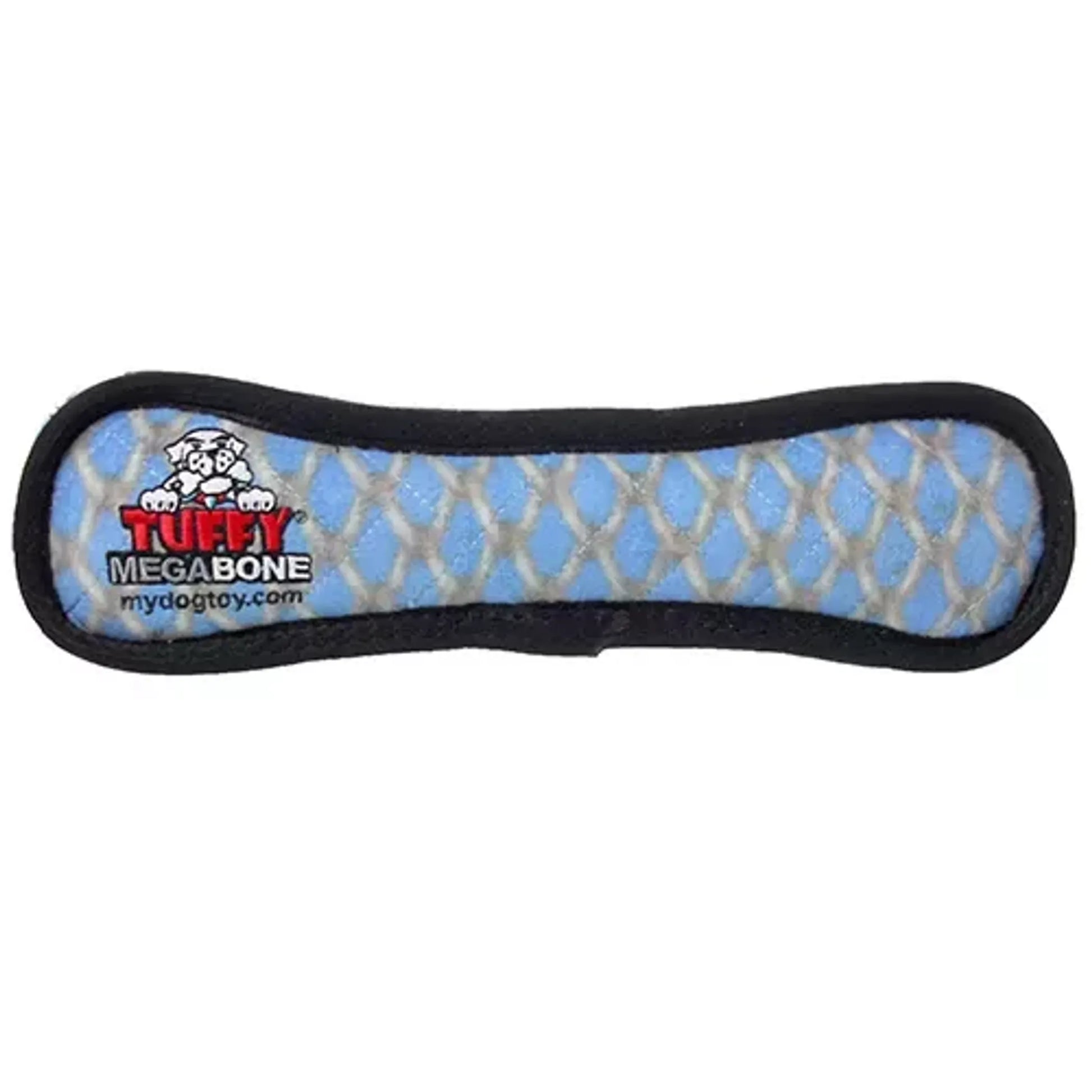 Tuffy Mega Bone Chain Link. Great for interactive play with one or multiple dogs. Best for dogs who like to whip their toys and play tug for hours. Floats in water, and its machine washable, (air dry). 4 LAYERS OF MATERIAL Tuffy Ultimate toys are made with UP TO 4 layers. 1 layer soft fleece on the outside. 1 to 2 layers of industrial grade luggage material on the inside. 1 layer of plastic coating on the inside.
