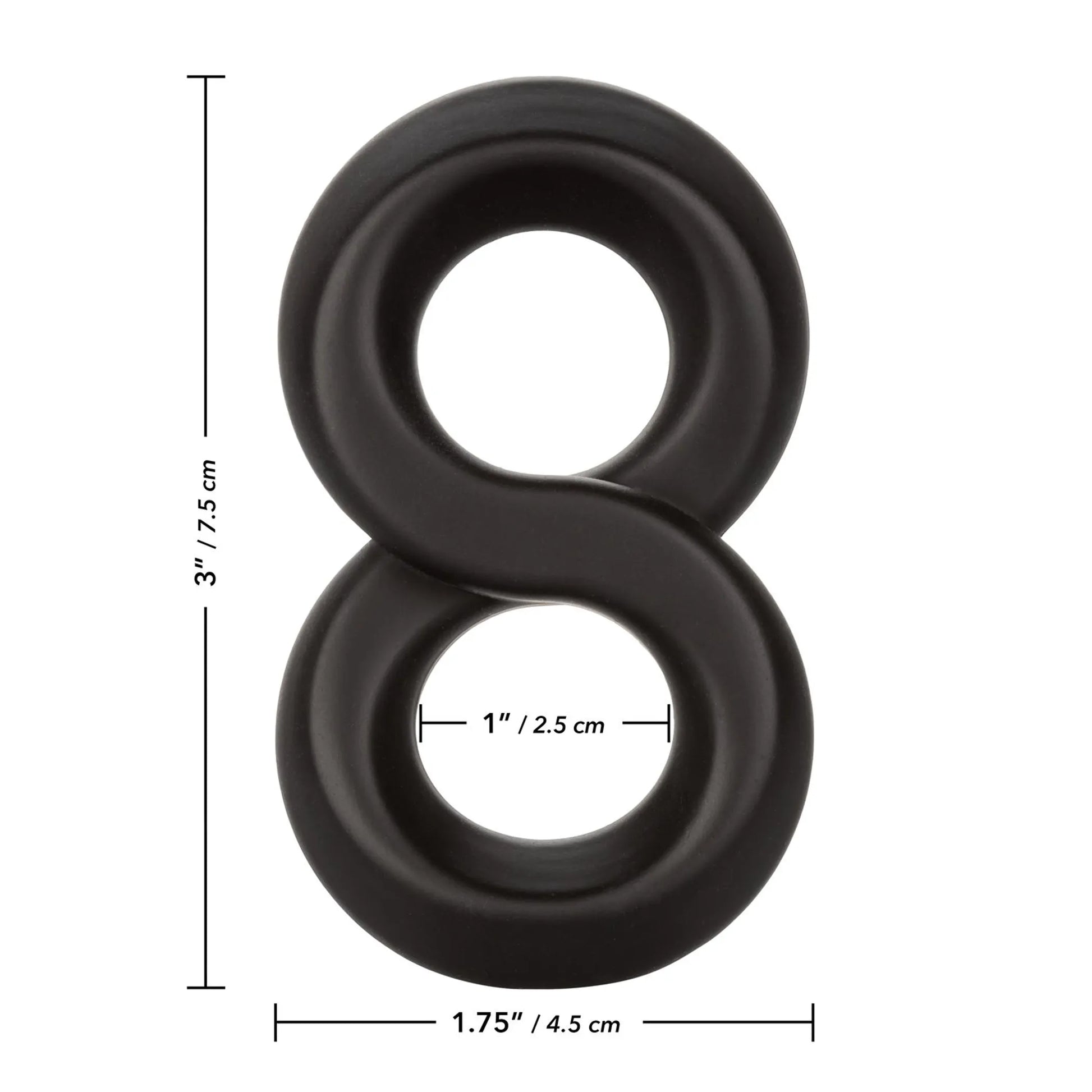 Ultra Soft Crazy 8 Cock Ring Black from California Exotic Novelties. From bashful beginners to erotic experts, the Ultra Soft Crazy 8 will wrap you tight in pleasure with the ultra plush, stretchy dual enhancer Ring. The stretchy, comfortable enhancer was created to increase stamina, improve sensitivity and deliver superior erection support. Look forward to an explosive pleasure experience while the unique built in scrotum support holds tight. The premium Ultra Soft silicone is body safe, unscented and phthalate free to keep you most sensitive spots, happy and healthy. Specifications: Color Black. Materials Silicone. Features Phthalate free, waterproof. Allergens N/A. 1 year warranty. Measurements 1 inch by 3 inches by 1.75 inches Ring. 1 inch Ring diameter. Bulk weight 1 ounce. Package 2.2 ounces. Package 1 inch by 4.25 inches by 7.75 inches. Categories: Love Rings, Sex Toys for Couples, Men, Women, Classic Cock Rings, Men's Cock and Ball Gear. 2023.