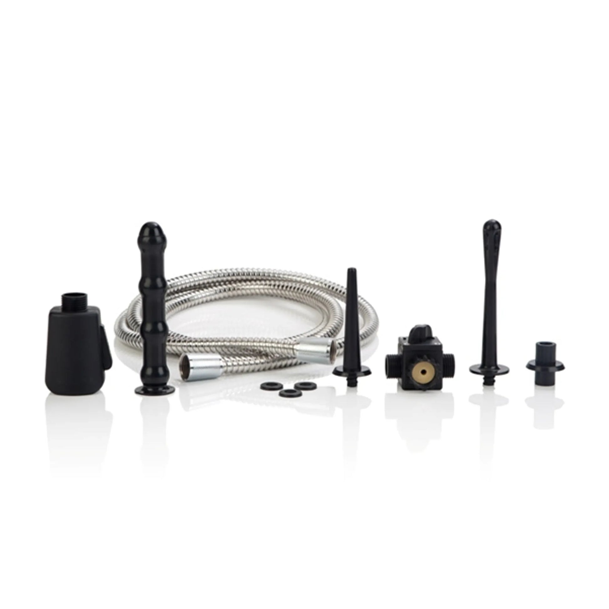 Universal Water Works System from California Exotic Novelties is a multiple use system easily attaches to shower, bath, or sink! Versatile attachments make this the perfect bathroom accessory for intimate water play. Directional valve adapter installs easily to switch from shower head or faucet to the Universal Water Works System. Includes: directional valve adapter, 3 variable spray attachments, hand held on/off control, 6 feet of non-tarnishing, Nickel free, non-crimping flexible hose, and spare washers. Instructions included. The Cal Exotics Universal Water Works System has all bases covered when it comes to wet and wild play. You can be guaranteed all the fun bath time has to offer when you purchase this fantastic, water play product. This water system is 100% multi-use. It affixes easily to the tub, shower or sink, via the versatile attachment, to provide hours of intimate bathroom based water play. The directional valve adapter allows the user to switch quickly between the shower head and faucet, meaning that you can enjoy the Universal Water Works System whenever the need takes you. Included is a directional valve adapter, three variable spray attachments, a hand held flow controller which allows the user to turn the water on or off easily, a six inches non-tarnishing, Nickel free, non-crimping hose, which allows the user full dexterity, a spare hose washers, and full instructions. Dispose of the bubble bath, rubber duck, and the candles the Universal Water Works System is the only item you need to fully enhance your intimate bath time experience. Just do not forget to lock the door! Made using phthalate free, non-toxic materials: ABS plastic handle and attachments, Steel and chrome hose. Pinpoint spray attachment measures 3.25 inches long by .5 inch wide. Tiered multi-use wand measures 5.25 inches long by .75 inch wide. Standard douche attachment measures 4.75 inches long by .6 inch wide. 1 year warranty. Categories: Anal Toys, Health and Beauty Aids, Anal Douches, Enemas and Hygiene, Hygiene and Intimate Care. 2023.