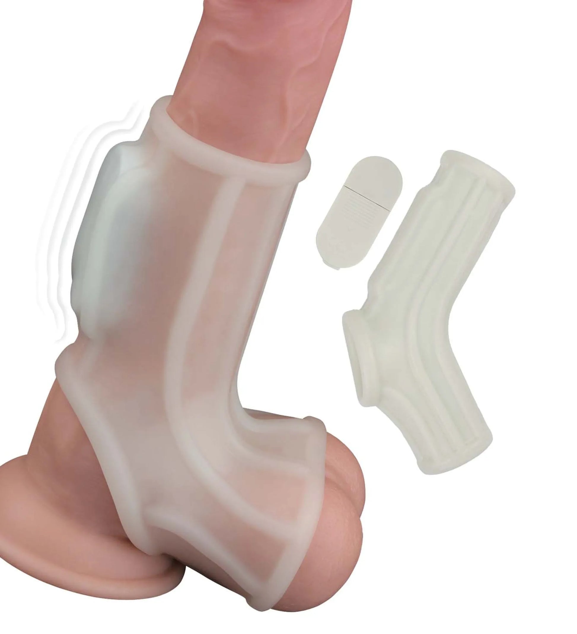Vibrating Power Sleeve Sleek Fit White Ultimate Vibrating Penis Enhancer from Nasstoys of New York. Instantly add an extra 45% of girth to your erection with the Vibrating Sleek Fit Power Sleeve so you can really fill your lover. this performance enhancement sleeve fits like a glove and feels like a second skin, giving wearers increased girth and confidence. Ideal for people with erectile dysfunction ED and performance anxiety. The Nasstoys Vibrating Sleek Fit Power Sleeve will stretch to comfortably fit almost every erection and has everything you could want in a penis enhancer like a lightly textured shaft, secure testicle strap, and a vibrator. Each thrust will provide stimulating texture and vibration to drive both of you over the edge. Plus, since this extension is made from Thermoplastic Elastomers TPE. Sleeve will easily warm to body temperature for an incredibly real feel. Just add your favorite Water Based Lubricant and have a slippery and wild time. After use, simply wash the toy with mild soap and water or a Toy Cleaner for even quicker cleanup. Store this toy separately from other sex toys for longevity. Features Power Sleeve Sleek Fit: ultra stretchy. Silk touch. Thicker girth. RoHS compliant. Phthalates free. Waterproof. Materials: Thermoplastic Elastomers TPE. Size: overall length 5.2 inches, overall width and height 3.6 inches, Shaft sleeve inner diameter 1.2 inches, Shaft sleeve outer diameter 1.5 inches, Scrotum sleeve inner diameter 1.1 inches, Scrotum sleeve outer diameter 1.4 inches. Vibrating Power Sleeve requires 1 CR2032 battery, included. Voltage 3V. Please note Vibrating Power Sleeve is shown on a dildo for how to use. Not included. Categories: Vibrators, Love Rings, Sex Toys for Men, Vibrating Love Rings, Men's Cock, Ball Gear, Penis Sleeves, French Ticklers. 2023.
