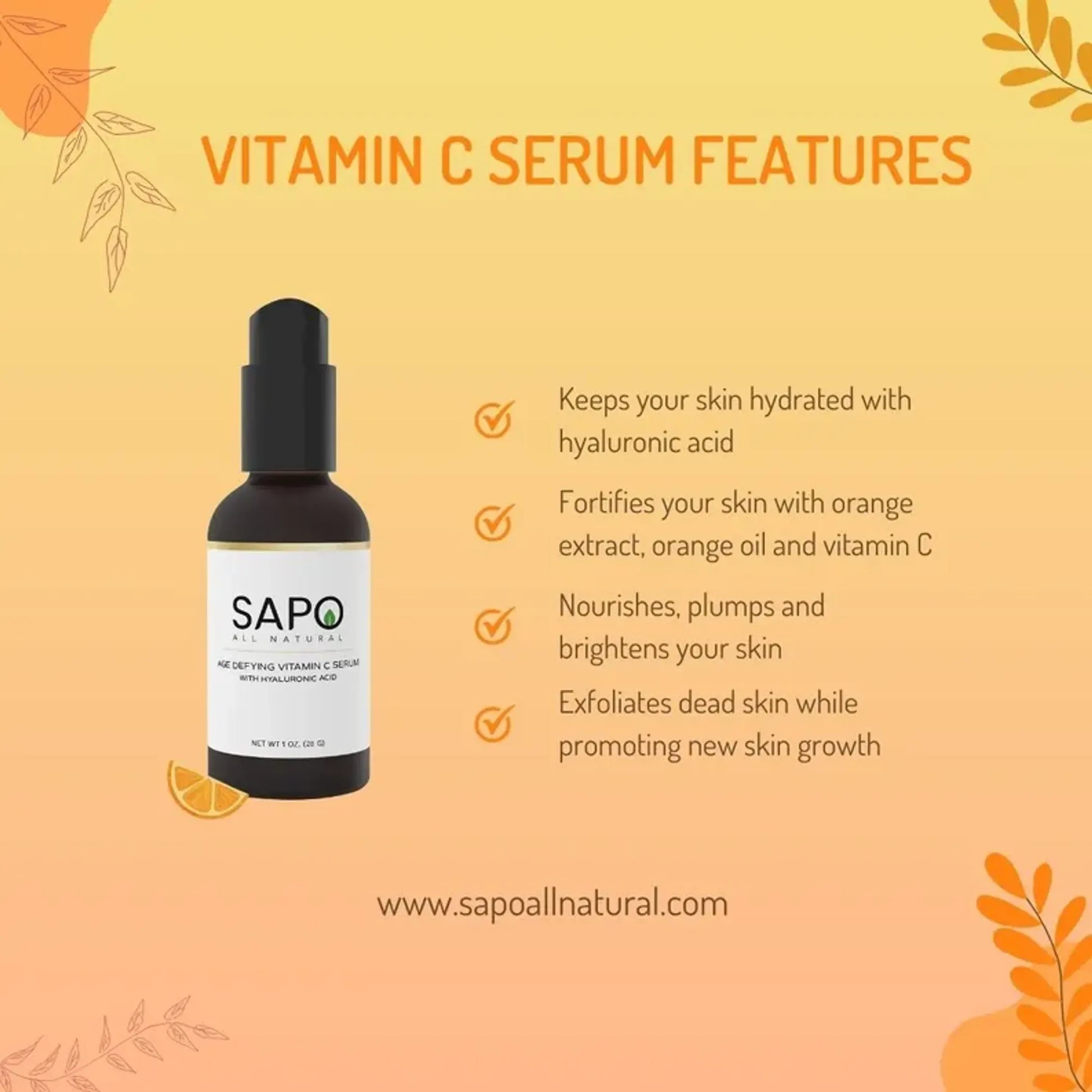 Sapo All Natural Vitamin C Serum is made with glycerin, butylene glycol, saccharide isomerate, orange oil, hyaluronic acid, chamomile extract, orange extract, carrageenan and of course, vitamin C.