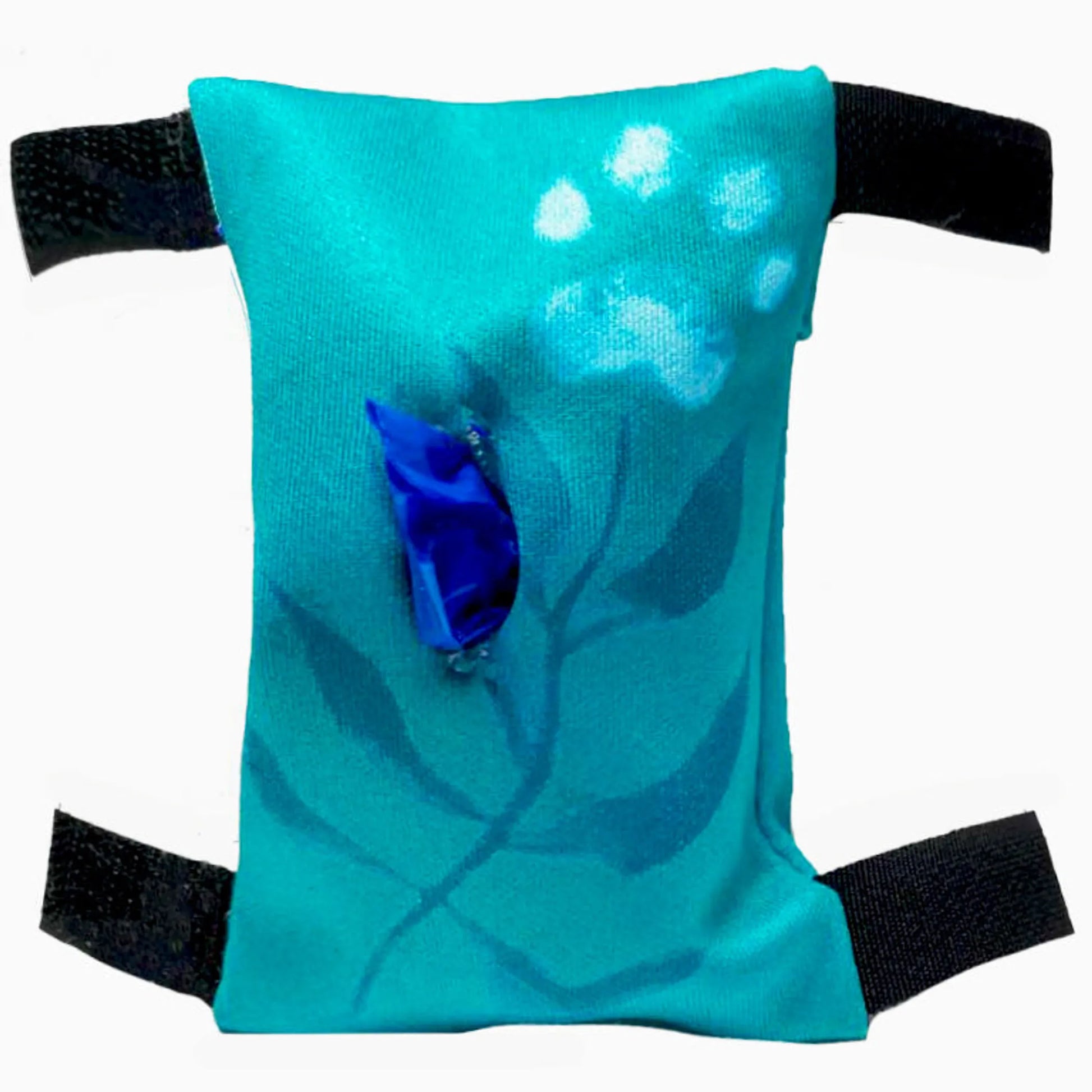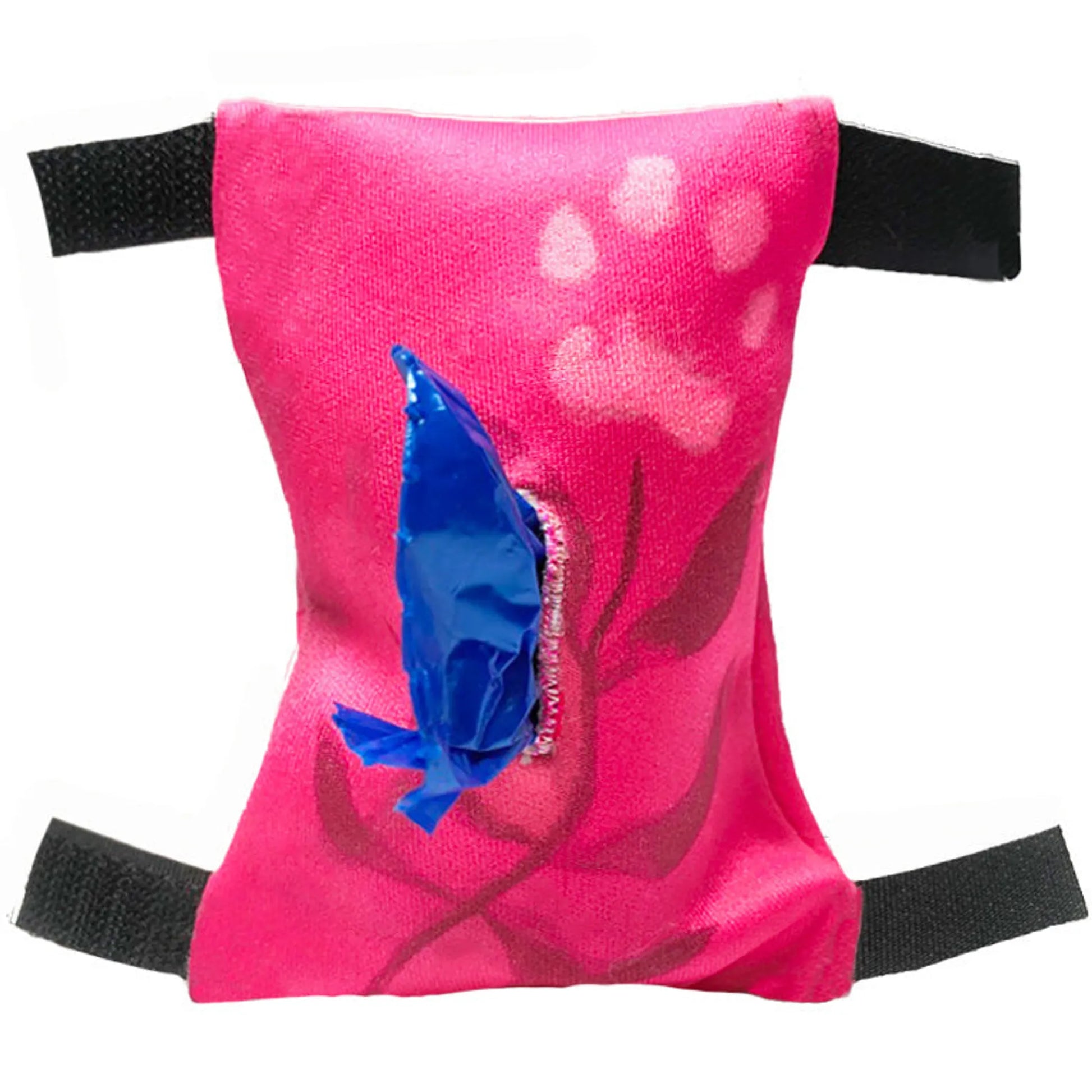 To use: Slip roll of bags inside back flap. Thread first bag thru the front slit. Then, using the two velcro tabs, secure around your leash.