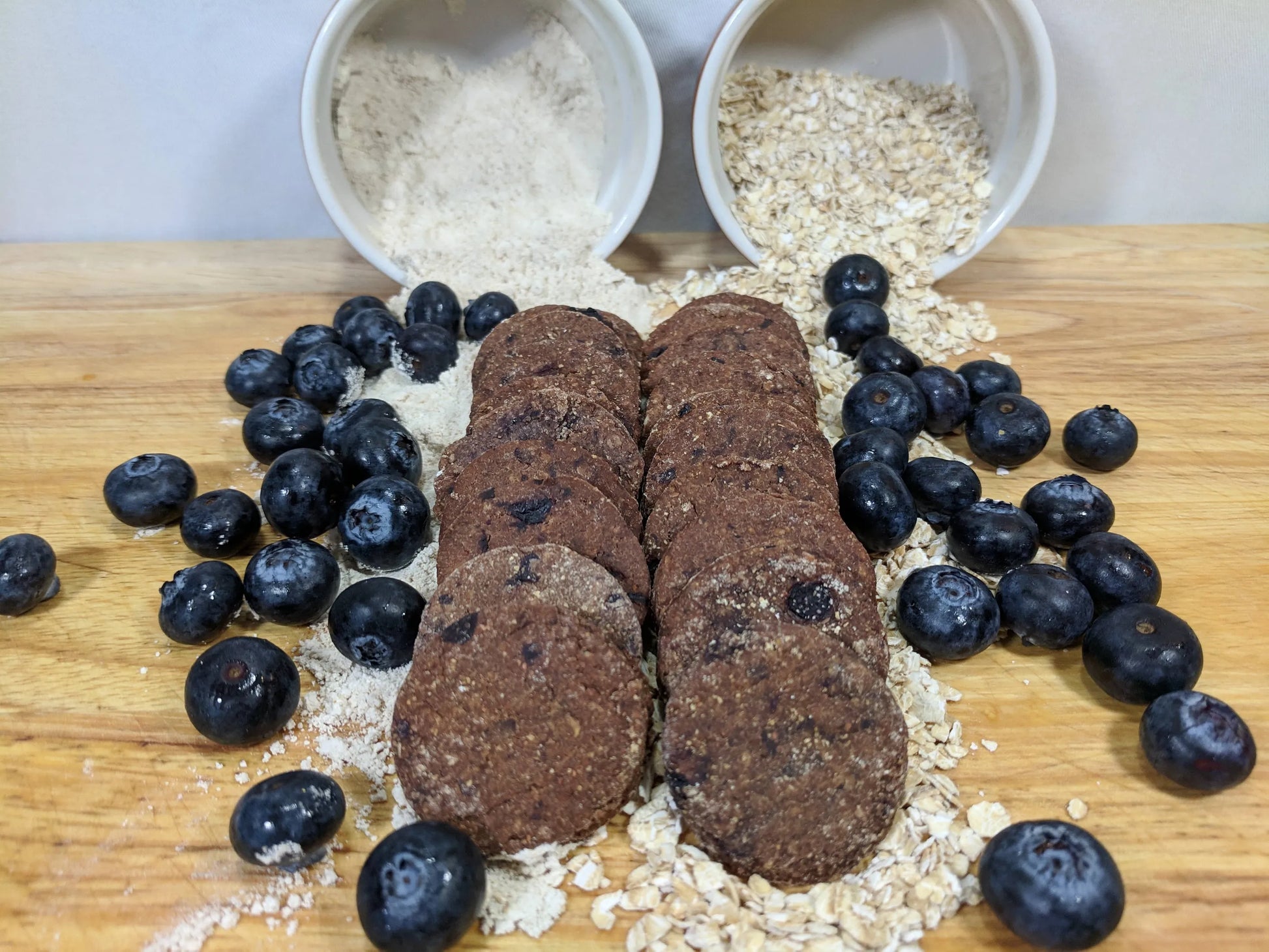 Our delicious and nutritious Wheat Free Blueberry Biscuits are jam-packed with blueberries and pumpkin. The Wheat Free Blueberry Biscuits are ideal for dogs with sensitive stomaches or restricted diets. These vegetarian treats are an excellent low fat, vegetarian option.