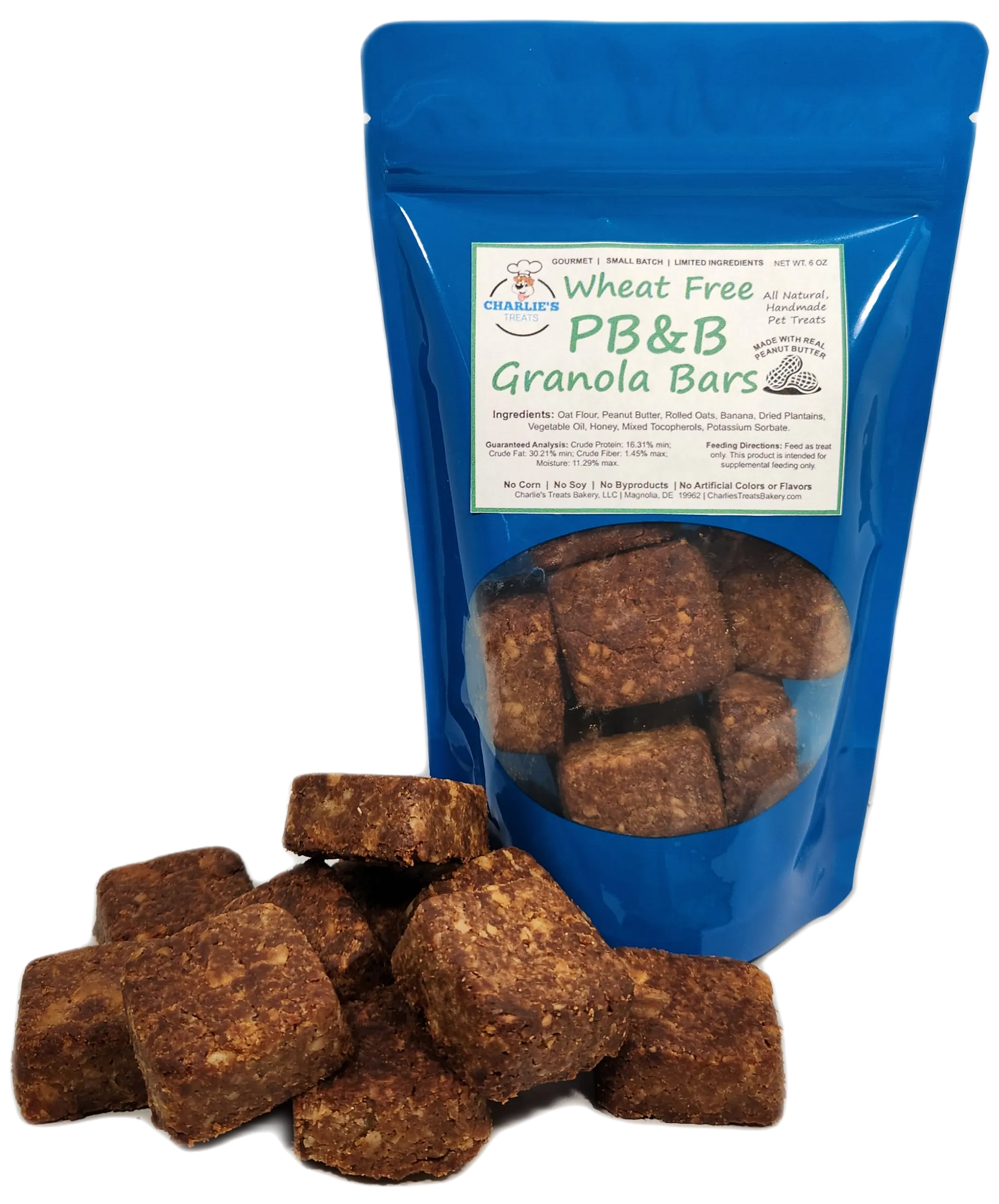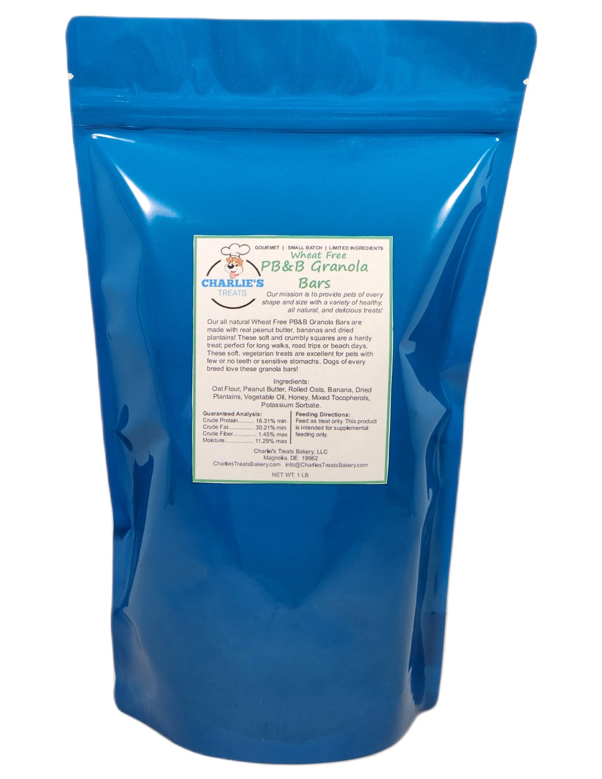 Soft, crumbly and yummy! Give your furry friend the delicious and nutritious Wheat Free PB&B Granola Bars, made with unsalted, unsweetened peanut butter, real bananas, and dried plantains.
