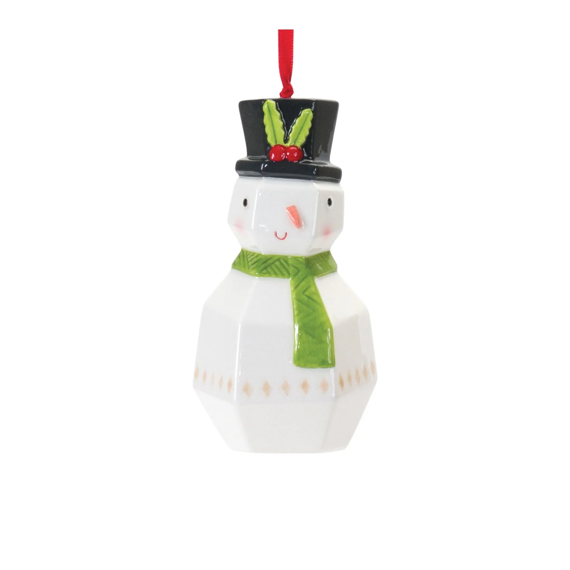 Add a whimsical touch to your Christmas Tree with this beautiful set of Santa and Snowman Ornaments. Featuring 6 pieces, this set's festive red and white tones, modern boxy characters, and holly berry accents are the perfect combination to create a memorable display. The quality dolomite stone composition with ribbon hanger is sure to endure for seasons to come. Whether you're adding a touch of cheer to your home or gifting to a loved one, these ornaments will definitely bring smiles to your home.