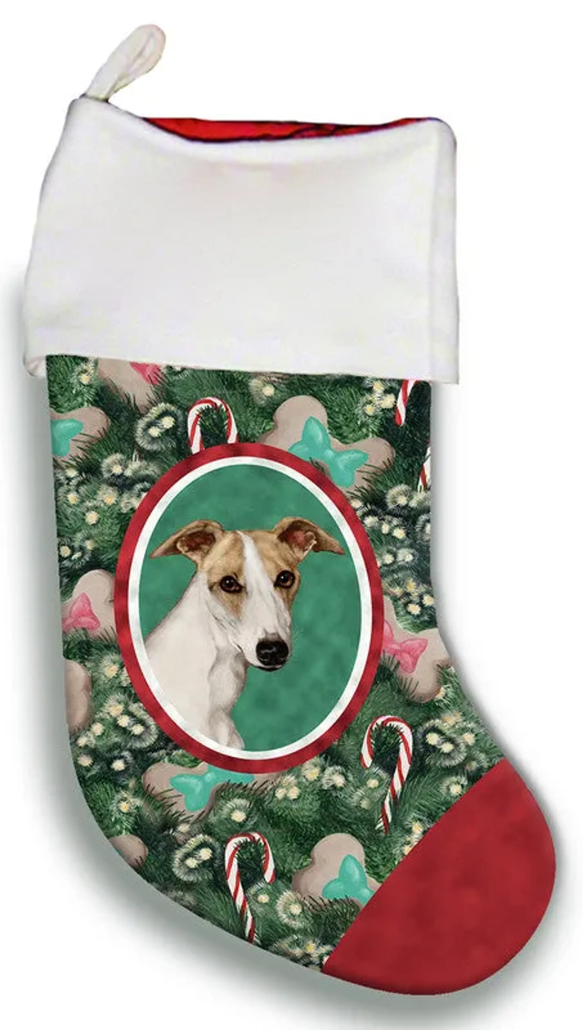 Whippet Fawn/White- Best of Breed Christmas Stocking