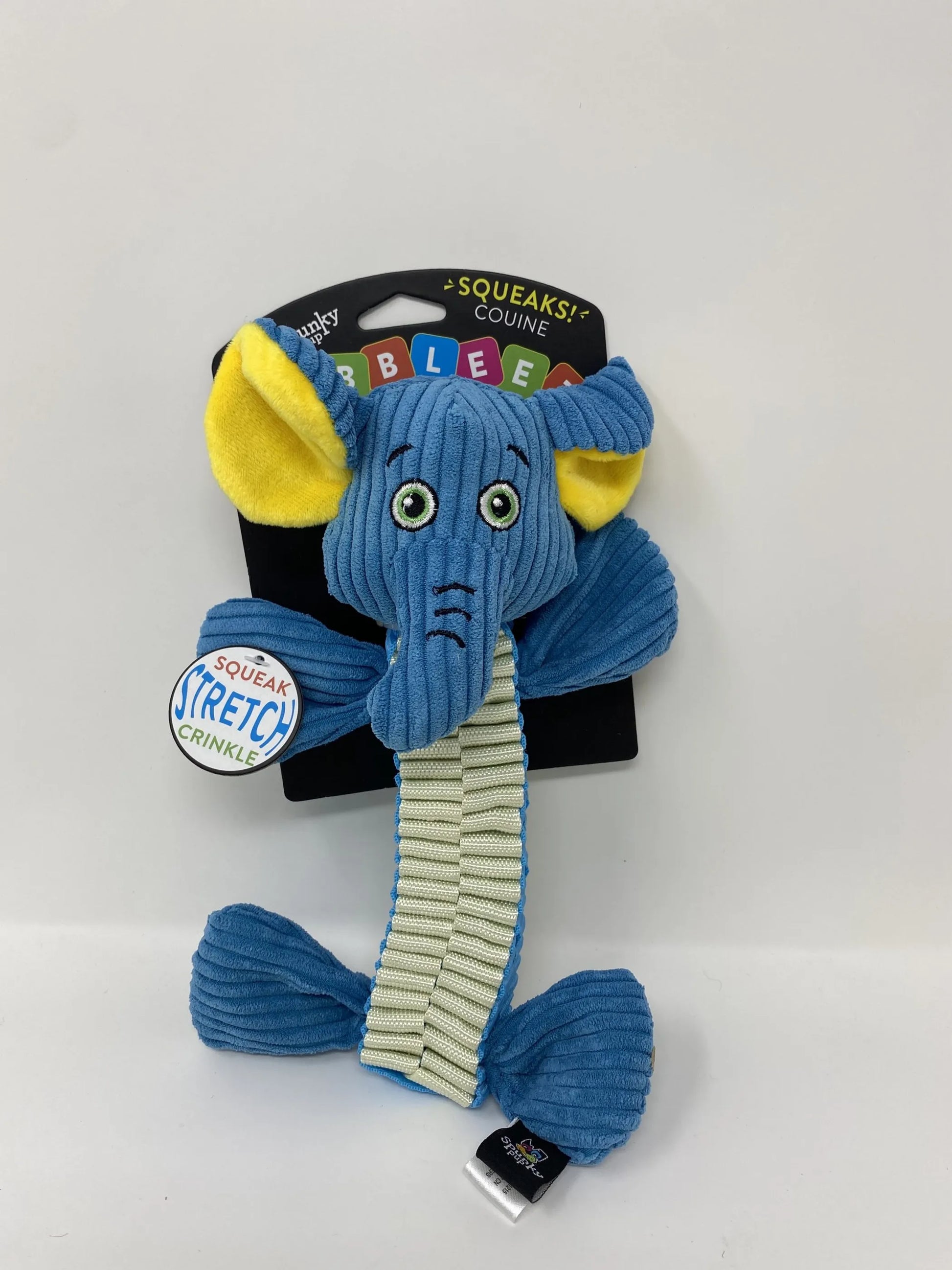 Squeaks and crinkles as your dog plays. Styles and colors are assorted.