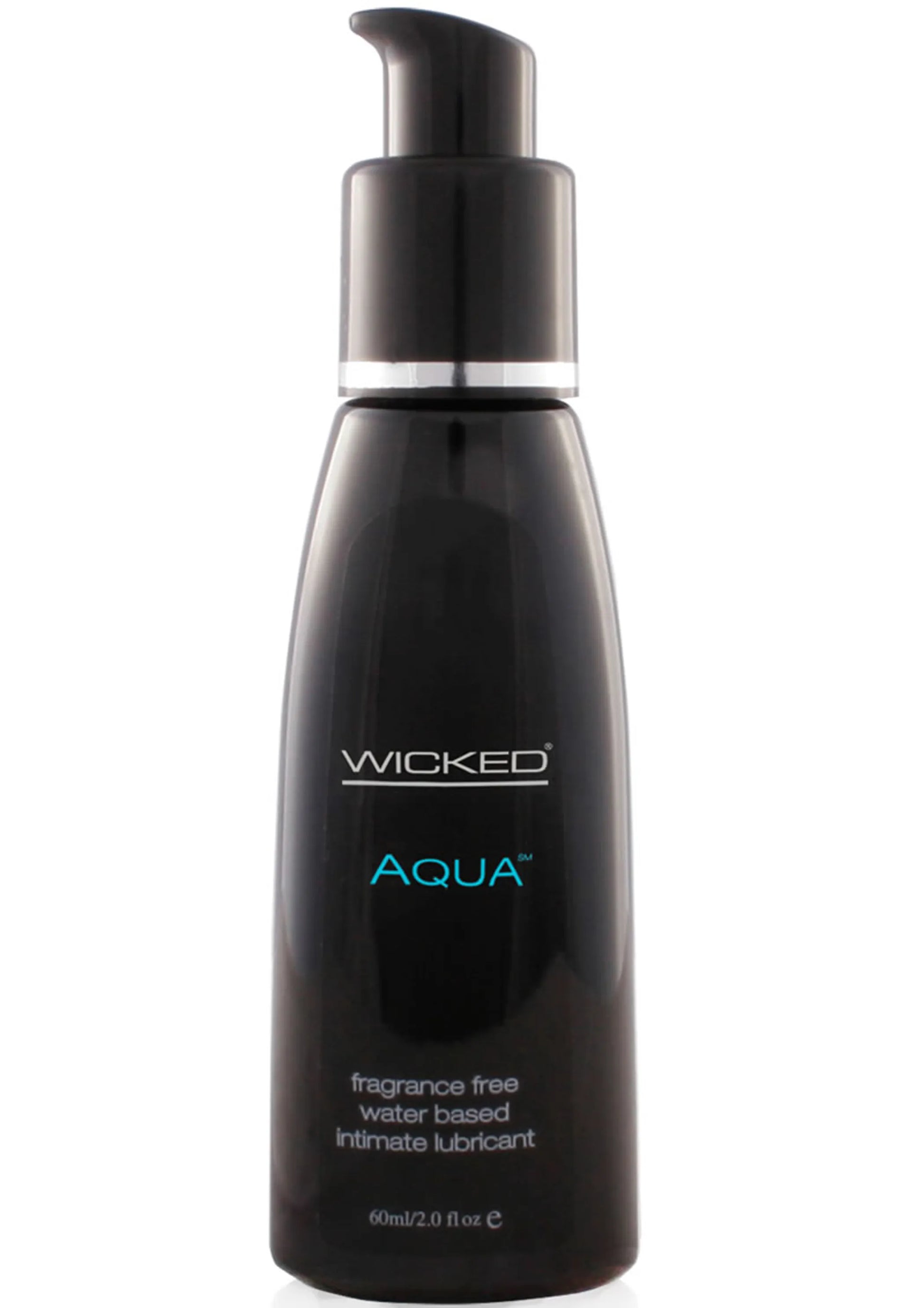 Wicked Aqua Lube comes in a non-graphic black pump dispenser plastic bottle with 2 ounces. The Wicked Sensual Care Collection is a completely vegan, cruelty free and PETA certified line of personal lubricants and enhancers developed exclusively for the company by skincare industry veteran Carrie Smith. These lubricants are water based and Paraben free. Clean up is easy; simply rinse with water. Clinically tested as hypoallergenic, it is completely glycerin free pH balanced. Incredibly luxurious and silky smooth, this personal lubricant is crafted with a unique blend of spa quality ingredients and is enriched with Aloe, Vitamin E and Olive Leaf extract. This water based lubricant is so rich you will be surprised it is not Silicone Lubricant! Long lasting and never sticky or tacky, Wicked Aqua Lube absorbs completely with no residue and is designed to heighten sensation and intensify ecstasy. Features: fragrance free. Paraben free. Latex condom compatible, sex toy friendly. Long lasting formula. Never sticky. Enhanced with Olive Leaf Extract._x005F_x005F_x005F_x005F_x005F_x005F_x005F_x000D_Vegan no animal by products or testing. Directions: apply to areas where lubrication is desired. Cleans away easily with water. Ingredients: Water, Propylene Glycol, Glycerin, Tocopheryl Acetate, Aloe Barbadensis Aloe Leaf Juice, Olea Europaea Olive Leaf Extract, Cellulose Gum, Hydroxyethylcellulose, Tetrasodium EDTA, Citric Acid, Sodium Benzoate, Potassium Sorbate. Wicked Aqua Unscented Lube from Wicked Sensual Adult Products. Categories: Lubricants, Water Based, Sex Toys for Couples, Health and Beauty Aids. Made in the USA. 2023.
