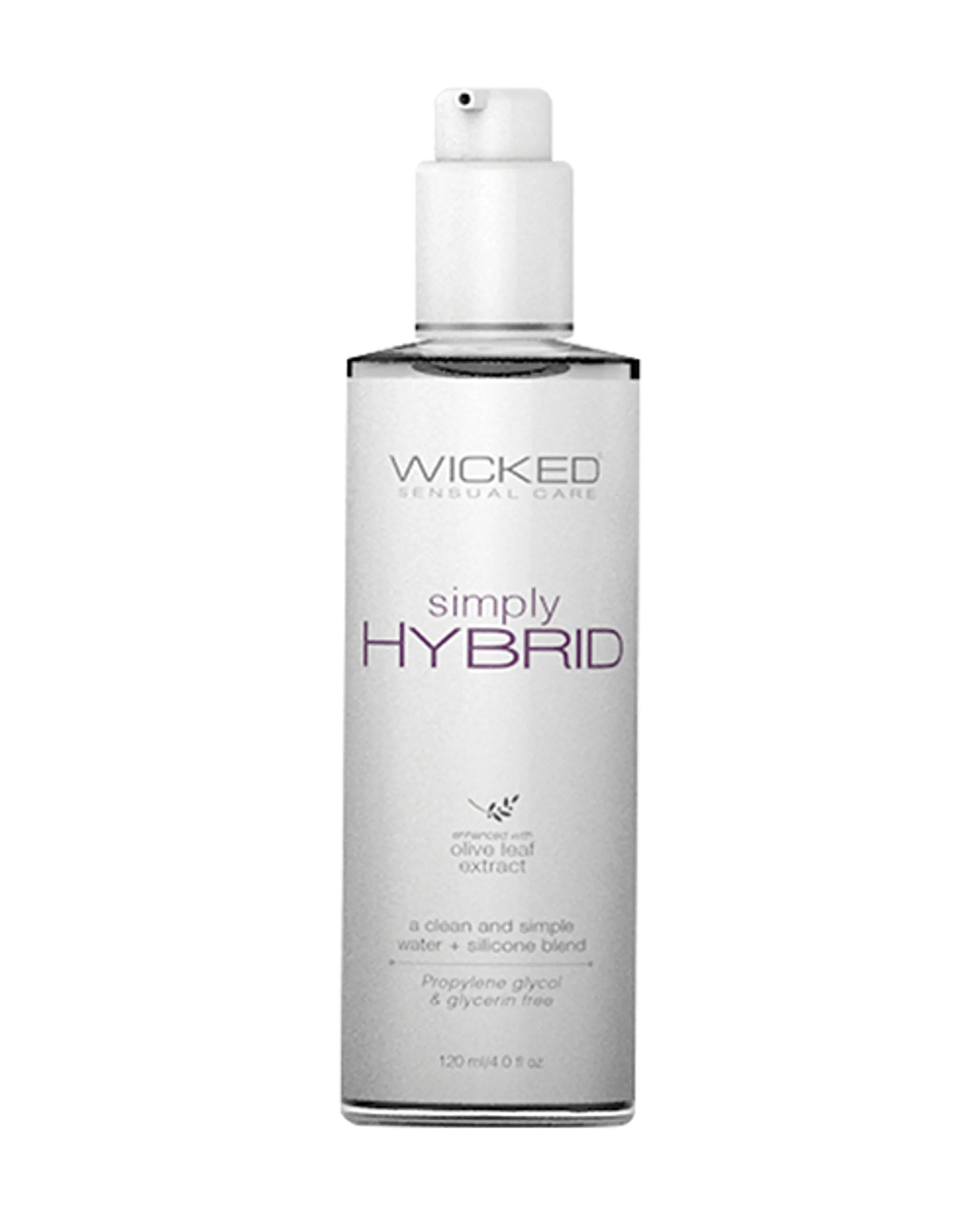 Wicked Simply Hybrid Lube 4 ounces. Do it simply. Simply lubricants are made without Glycerin, Propylene, Glycol or Parabens and are vegan and cruelty free. Like all Wicked Sensual Care formulas, they are enhanced with our signature Olive Leaf Extract, a natural bio static, that inhibits the spread of harmful bacteria and microorganisms. When you are ready for a clean lube, do it simply. A clean and simple water and silicone blend. Compatible with silicone toys. 4 ounces bottle of the Simply Hybrid Personal Lubricants. A creamy, realistic looking hybrid unlike any other, simply Hybrid is truly the best of both worlds. Incredibly smooth and long lasting, this perfectly blended combination of water based and silicone lubricants is free of Glycerin, Propylene Glycol, and Parabens. simply Hybrid is vegan, cruelty free, and is enhanced with our signature antioxidant rich Olive Leaf Extract, providing its moisturizing and biostatic properties. When you want a clean lube, do it simply. Enhanced with Olive Leaf Extract. Safe for use with all toy materials. Great for all types of play. Latex condoms compatible. Sex toy friendly. Long lasting. Realistic look and feel. Vegan, no animal by products or animal testing. Directions: apply to areas where lubrication is desired. Cleans away easily with water. Ingredients: Water, Propanediol Corn, Polyglyceryl-2 Stearate, Glyceryl Stearate, Stearyl Alcohol, Cyclopentasiloxane, Dimethiconol, Cyclohexasiloxane, Olea Europaea Olive leaf extract, Hydroxyethylcellulose Tree Bark, Citric Acid, Sodium Benzoate,Potassium Sorbate.Categories: Lubricants, Water Based Lubricants, Health and Beauty Aids. 2023.